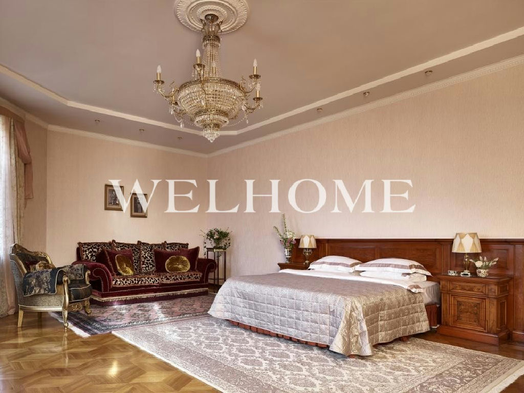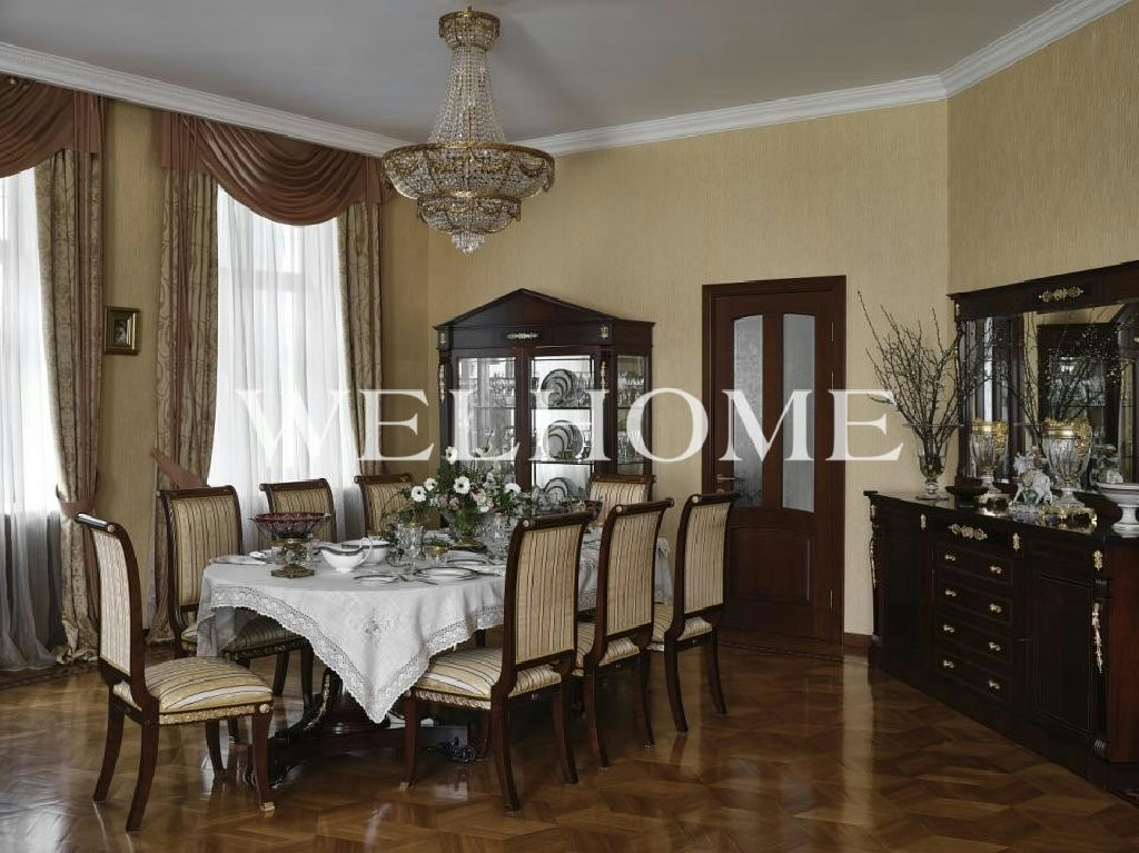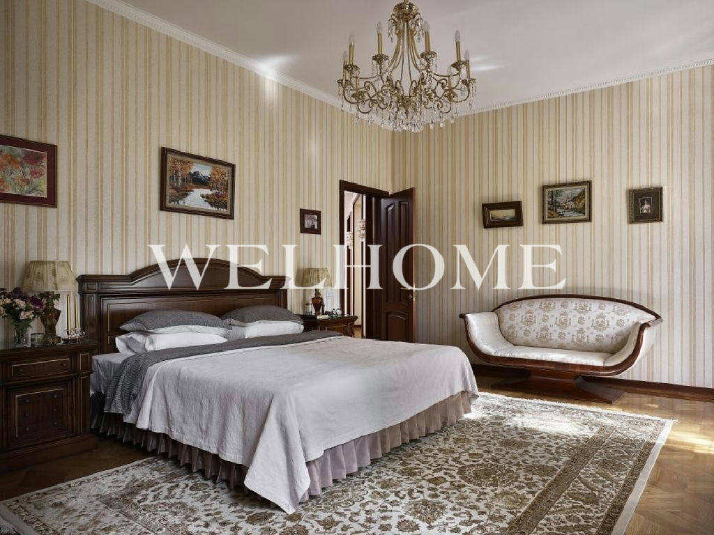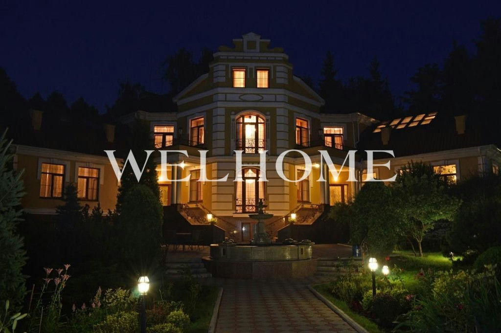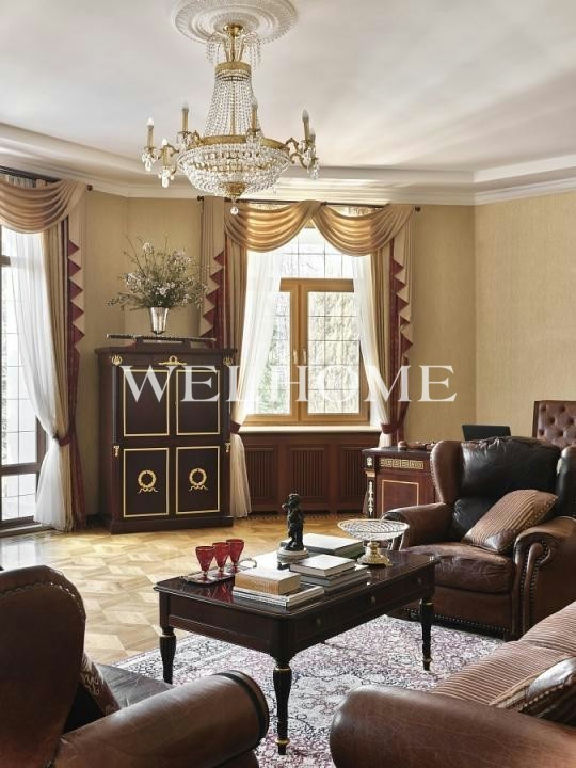 ID объекта на сайте Welhome: Z-10114. Предлагается резиденция в классическом стиле на участке с эксклюзивным ландшафтом в охраняемом поселке. В доме выполнен дизайнерский ремонт по индивидуальному проекту, есть бассейн, гостиная с камином, зимний сад, 8 спален, 9 с/у. На участке растут вековые сосны, выполнен первоклассный ландшафтный дизайн, создан фонтан, беседка, высажены декоративные растения из Германии, цветы. Все коммуникации центральные.Поэтажное описание: Цоколь: бассейн 12,5 х 6 метров, спортивный зал, 2 душевые комнаты, с/у;1 этаж: зимний сад, гостиная, кухня, кабинет, холл, 2 с/у, подсобные помещения;2 этаж: 4 спальни с гардеробными комнатами и с/у;3 этаж: 4 комнаты, 3 с/у.