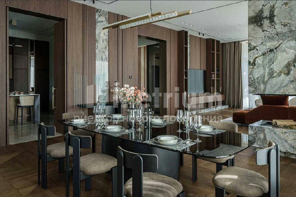 Отделка выполнена их натуральных материалов- мрамор, дерево, алюминий, установлены самые передовые инженерные системы, в том числе и центральная система приточно- вытяжной вентиляции и кондиционирования Daikin. Установлена алюминиевая оконная система премиум класса.