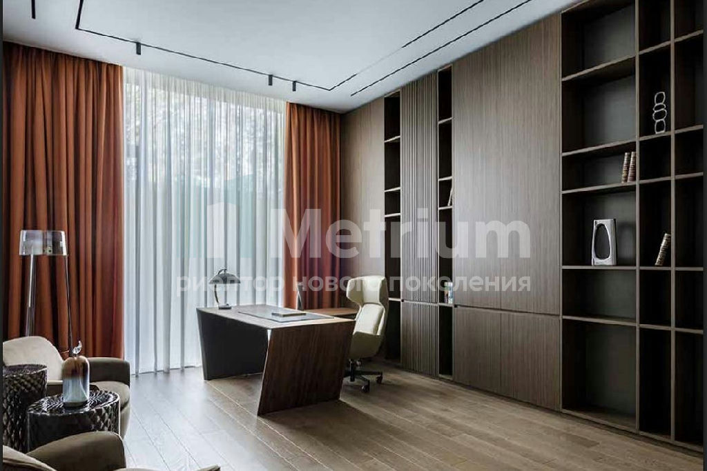 В интерьере использована дизайнерская мебель и осdещение (Италия), установлена техника Liebherr, Miele, сантехника Duravit, Hansgrohe. Обустроена шикарная просторная гостиная с дизайнерским камином. Ощущение воздушности и пространства дарят высокие потолки.