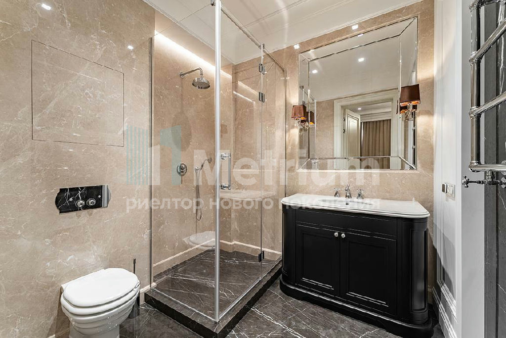 Отделка выполнена из натуральных материалов - мрамор, дерево, чугун, установлены самые передовые инженерные системы, в том числе и центральная система приточно-вытяжной вентиляции и кондиционирования Daikin.
