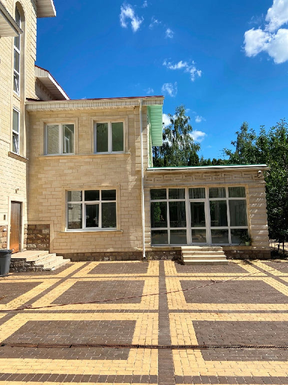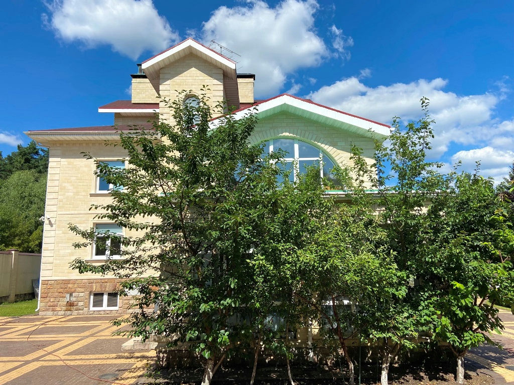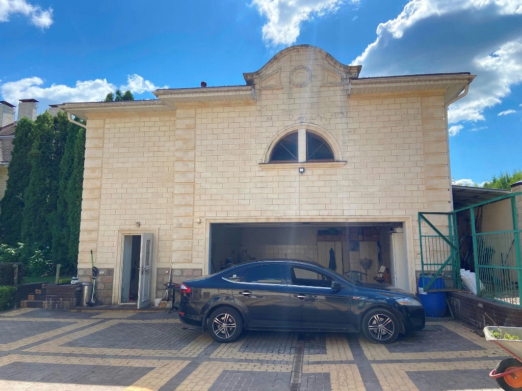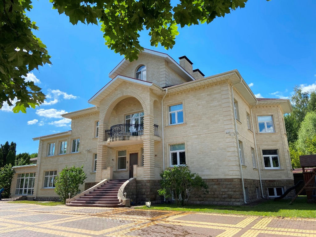 Коттедж 910 кв.м., стены - кирпич, облицованы натуральным камнем.