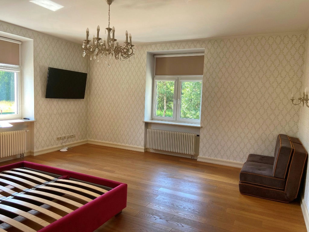 Второй этаж - мастер спальня со своей гардеробной и санузлом, 3 комнаты с возможностью их разделения, два санузла.