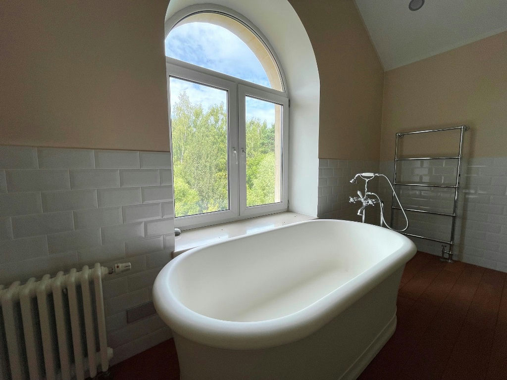 Третий этаж - гостевые или игровые комнаты, а также двухуровневая комната со своей гардеробной, санузлом и ВАННОЙ ОКОЛО ОКНА С ВИДОМ НА ЛЕС.