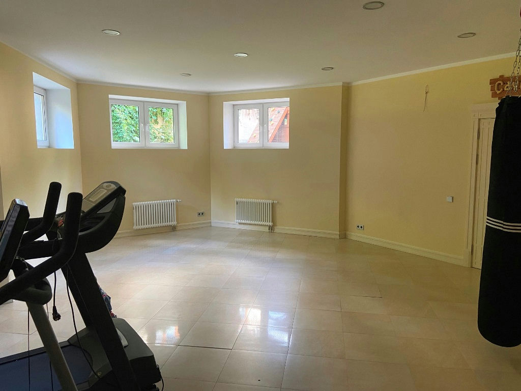 Цокольный этаж - спортзал, сауна, хаммам, своя комната отдыха, обособленная кухня, постирочная, котельная.