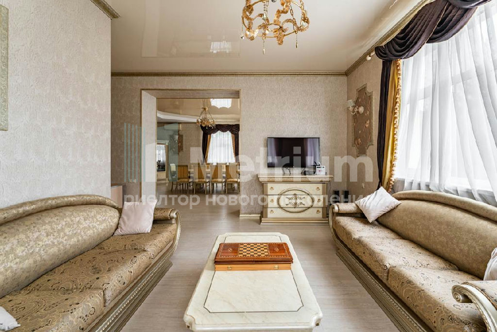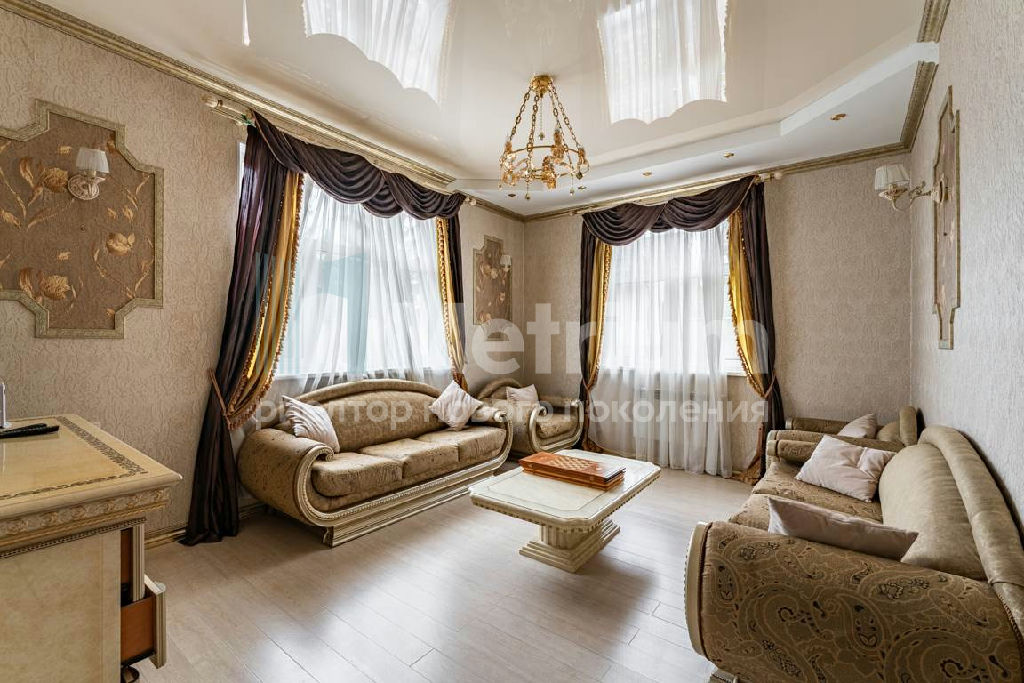 Дом полностью готов для жизни, выполнен качественный ремонт, создана атмосфера уюта. В доме 3 спальни, а также на участке 12 соток есть двухэтажная баня с бассейном и бильярдной, мангальная. Есть квартира для персонала.