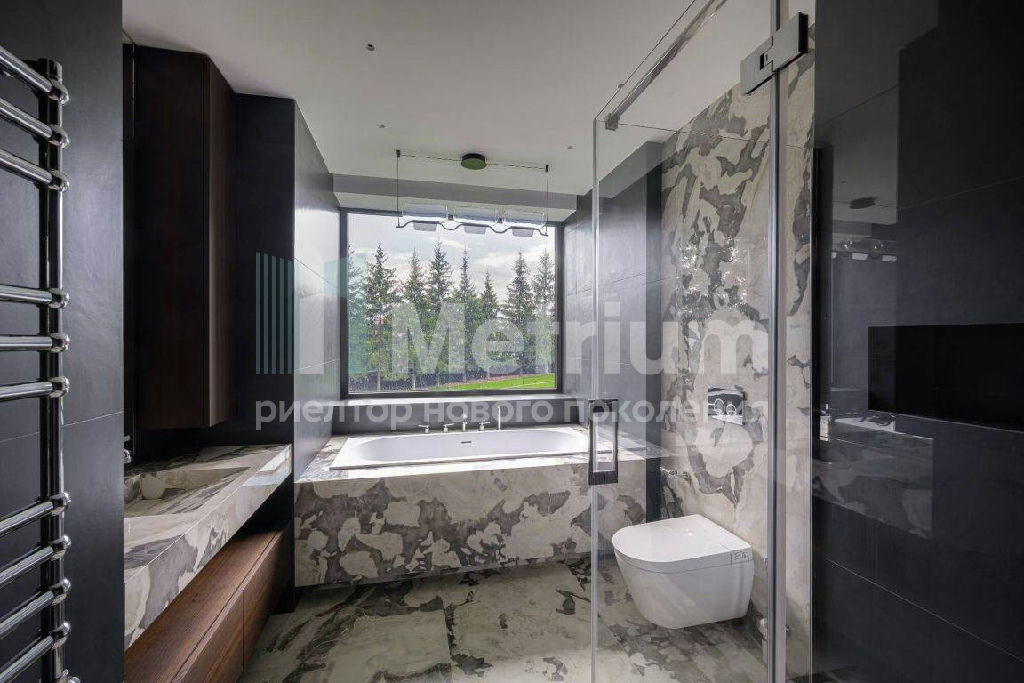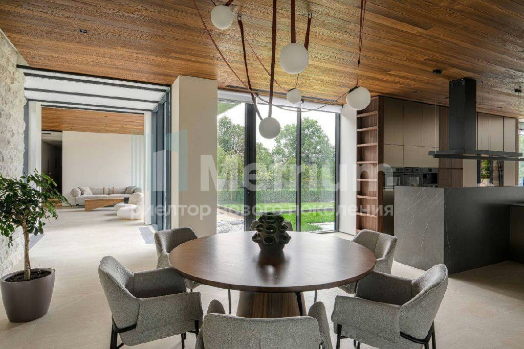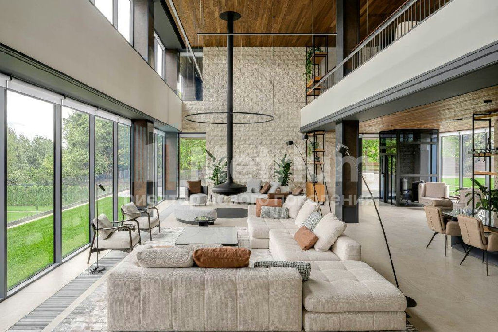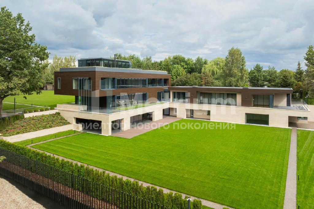 ID 14434 Резиденция площадью 2150 кв.м на участке 62 сотки расположена в 24 км от МКАД по Рублево-Успенскому шоссе в КП Рублевские горки. Удобный выезд на платную трассу.
