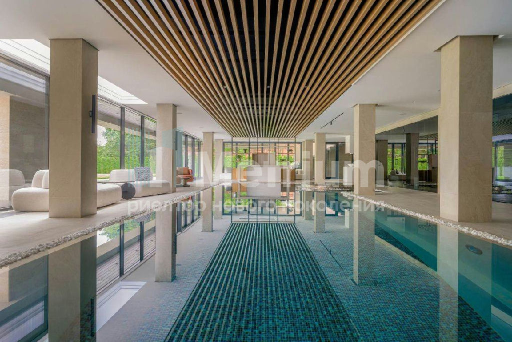 Фишки: лифт обычный и продуктовый, бассейн 15 метров (глубина от 1,2 до 2,2 метров), модный камин с поворотным механизмом на 360 градусов, второй свет в гостиной 7,6 м, снегогенератор.