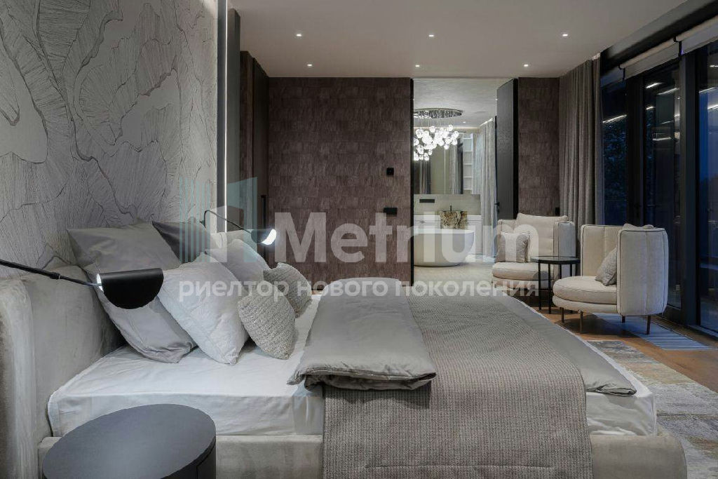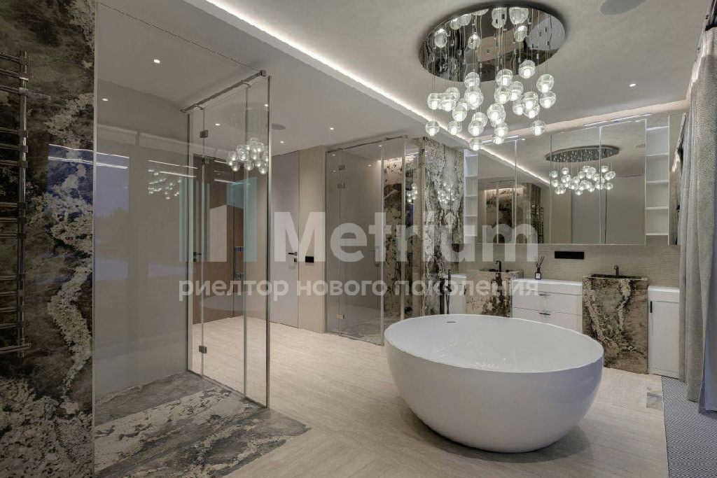 В доме: 5 спален, 2 гостиные, 3 кухни, 2 столовые зоны, кабинет с панорамным видом на 4 стороны, спа-комплекс с бассейном, сауной и хаммамом, винный погреб, гараж на 4 м/м, постирочная, балконы и террасы (442 кв.м).