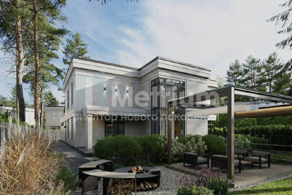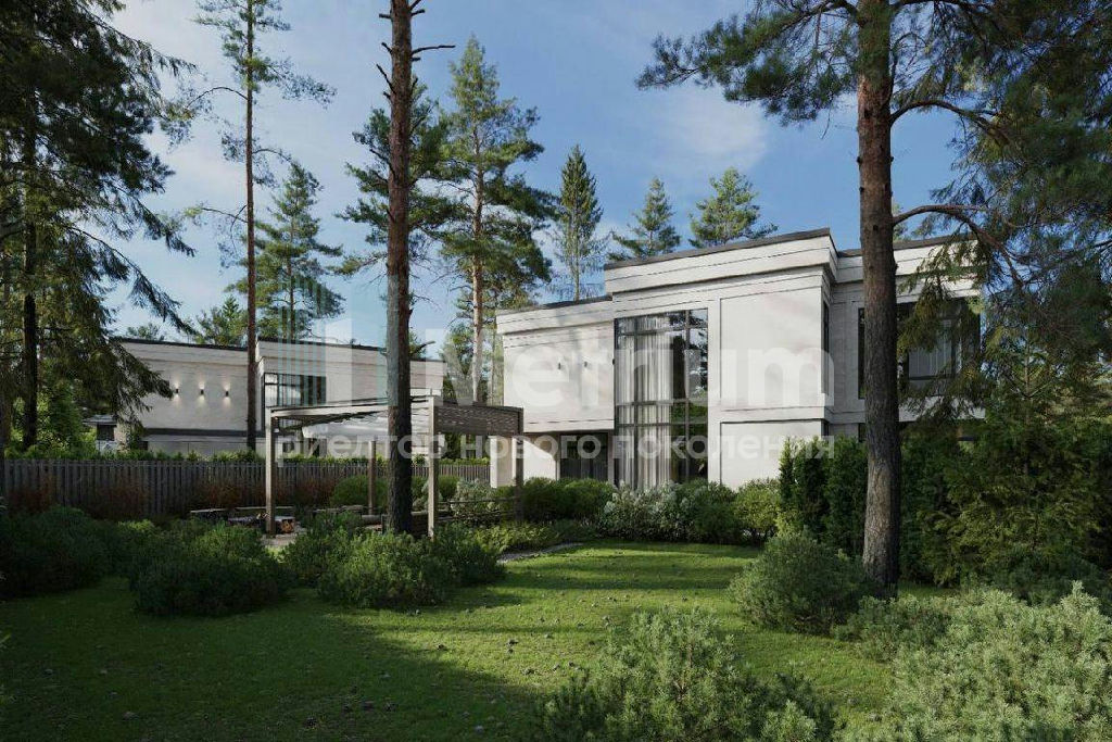 ID 13787 Новый дом бизнес-класса (на 4 спальни, в мастер-спальне 2 гардеробные комнаты + сан. узел с панорамным остеклением) площадью 638 кв.м (монолит/кирпич) на лесном земельном участке площадью 13 сот. Крытый гараж с панорамно-секционными воротами на 2 машино-места и террасой над ним. Центральная система вентиляции и кондиционирования. Высота потолков 3,3м. Центральные коммуникации. Теплые полы на 1 и 2-эт. Технологичная система газового отопления, с функцией дистанционного контроля и мониторинга. Система очистки воды. Энергосберегающее панорамное остекление, препятствует тепло-потерям в зимний период времени и попаданию ультра-фиолетового излучения, в летний период. Фасадное освещение в трендовой стилистике. Готовность декабрь 2024 г. под отделку.