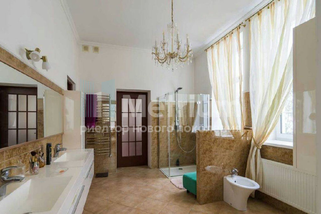 Дом построен в 2-х уровнях с удобной продуманной планировкой. Классические интерьеры наполнены светом и воздухом. В доме предусмотрены: роскошная гостиная со вторым светом, просторная кухня, столовая, кабинет, 4 спальни, 4 гардеробные, 5 ванных комнат, вторая гостиная 50 кв.м , библиотека, большая открытая терраса, плавательный бассейн с сауной и душевой. Отдельно на участке 24 сотки расположен гараж на 2 м/м с квартирой для персонала ( кухня-столовая, су, 2 спальни) . Есть возможность увеличить жилую площадь дома , используя мансардное пространство ( порядка 100-120 кв.м) . Проведены