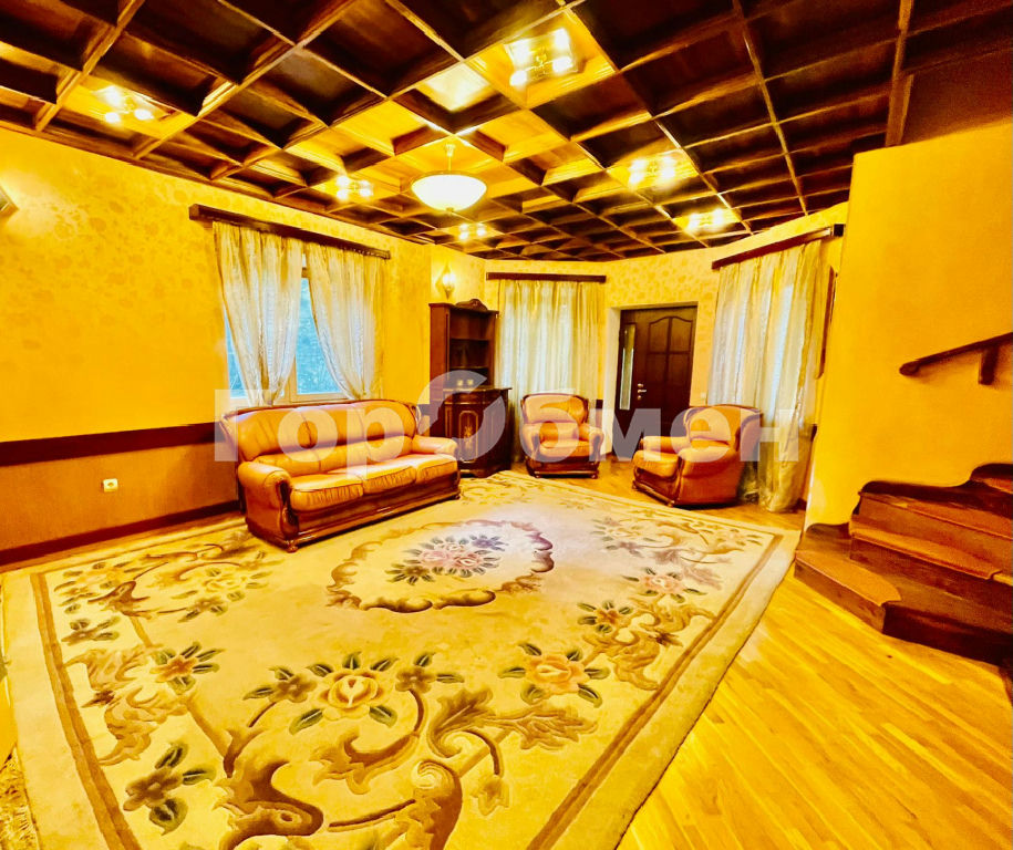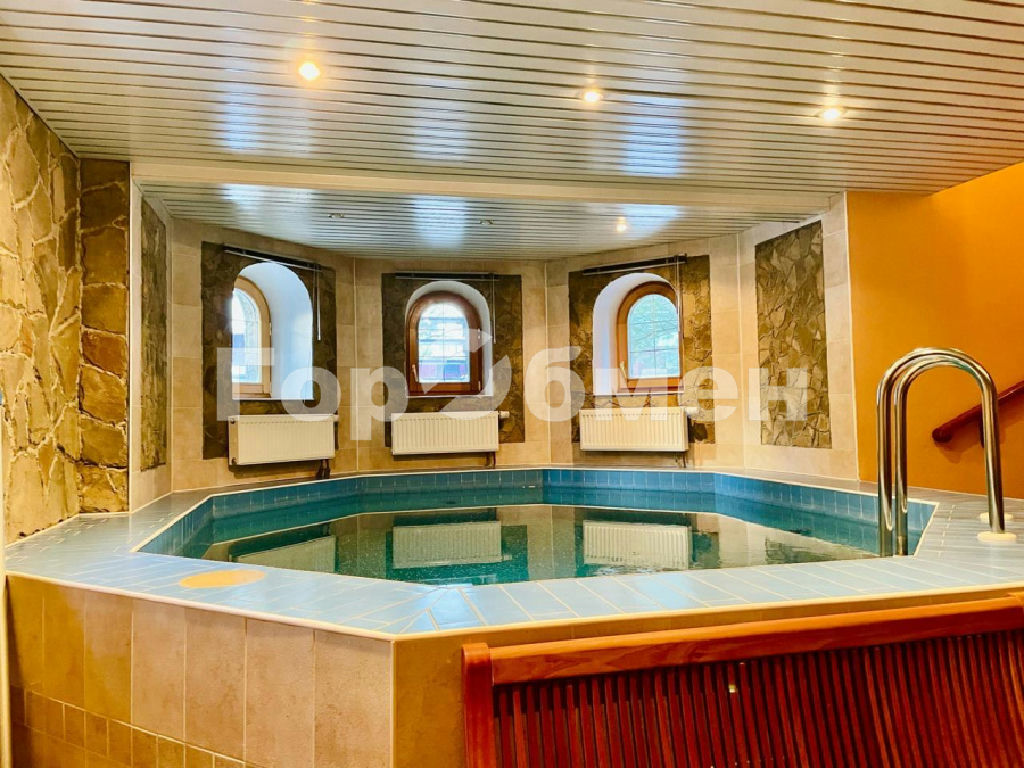 Цокольный этаж: зона отдыха, дровяной камин, комфортная мягкая мебель, бассейн с подсветкой и автоматической системой очистки воды, кресло массажное, сауна, душевая кабина, санузел. Вспомогательные помещения: постирочная, кладовая.