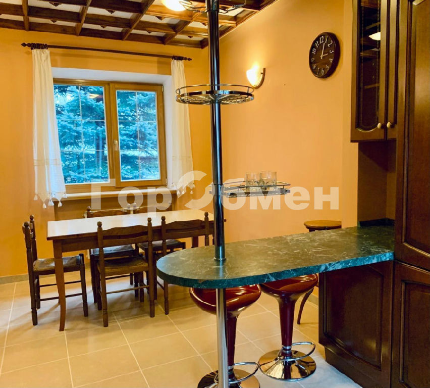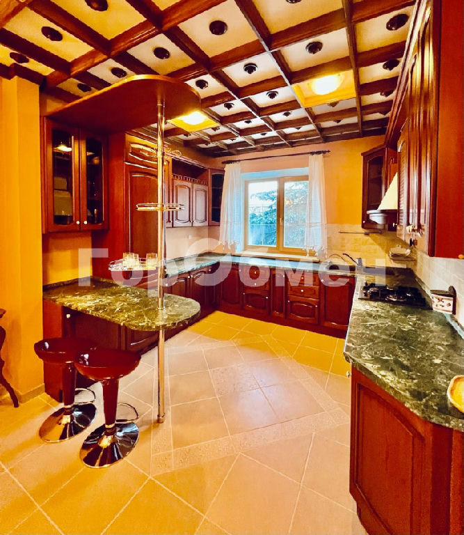 Первый этаж: освещенная гостиная с эркером и камином, который наполняет помещение атмосферой уюта и придает ему нотки роскоши. Прямой выход в сад и зону барбекю. Полностью укомплектованная мебелью и оборудованием кухня-столовая, комната для гостей, рабочий кабинет-библиотека, санузел, просторный холл.