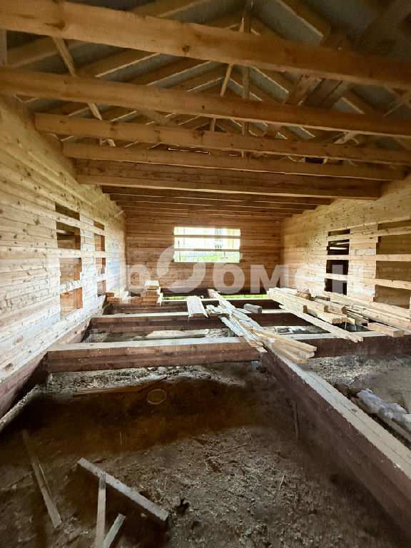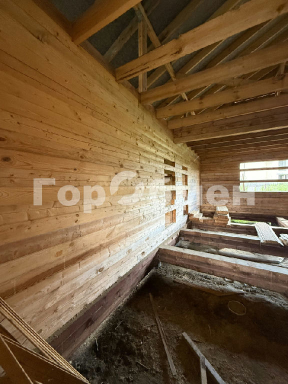 На участке стоит недостроенный дом из бруса, площадью 114 м2. Имеется проектная документация к нему.