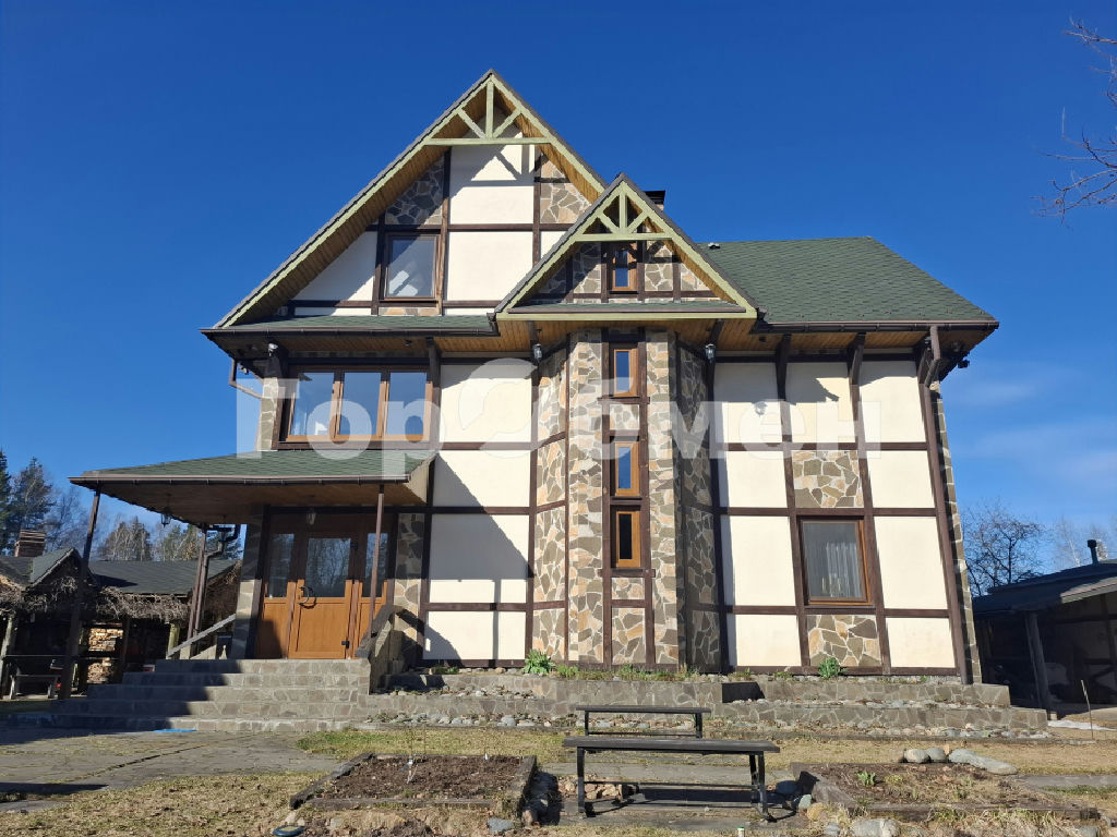 Продаётся просторный дом в деревне Кишкино Московской области. Дом построен в 2011 году, его площадь составляет 262,9 квадратных метров. Дом построен из цельного бруса хвойных пород, утепленный Тепофолом, толщина стен 450мм. Внешняя отделка фасада дома исполнена в альпийском стиле природным камнем. Дом находится в состоянии, готовом к проживанию, и окружён ровным участком земли площадью 14 соток. Участок правильной формы , сухой, с плодовыми и лиственными деревьями, ухоженный газон с красивыми выложенными плиткой дорожками.