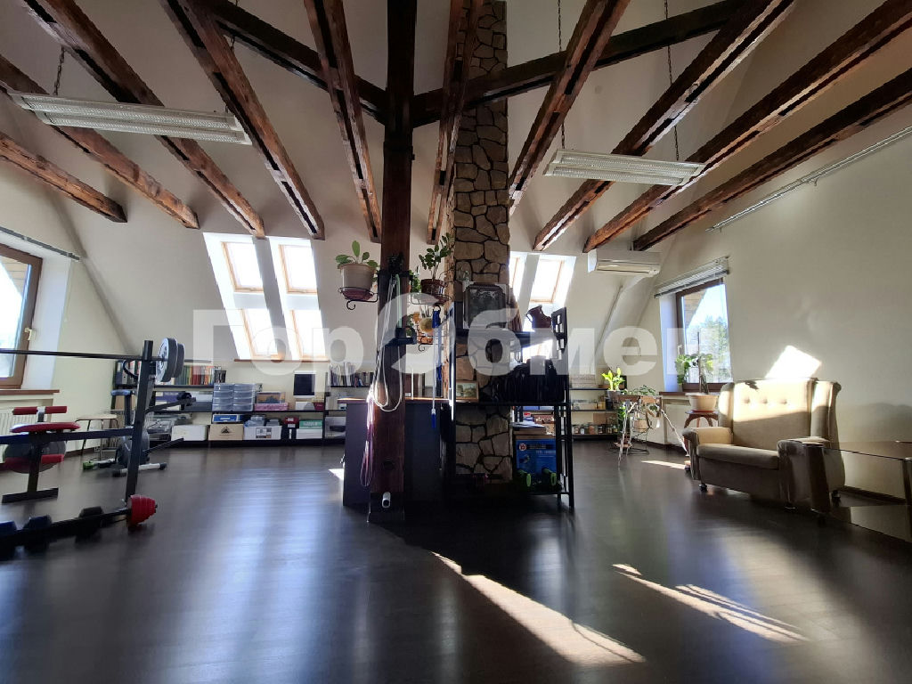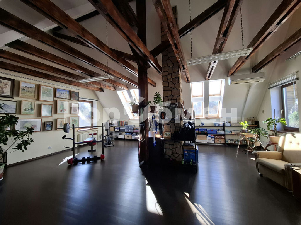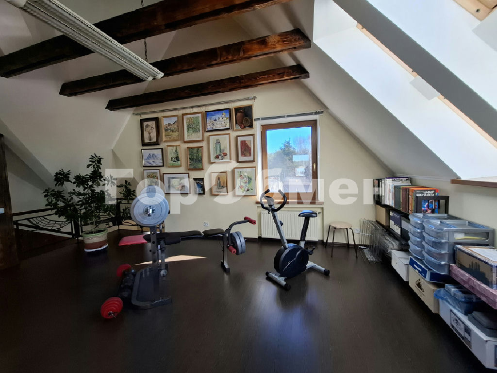 мансардный этаж 62,1 кв.м.: большое пространство для организации тренажерного зала или например под творческую мастерскую или кинотеатр площадью 42,3 кв.м., высота потолка 3,97 м, спальня и кабинет.