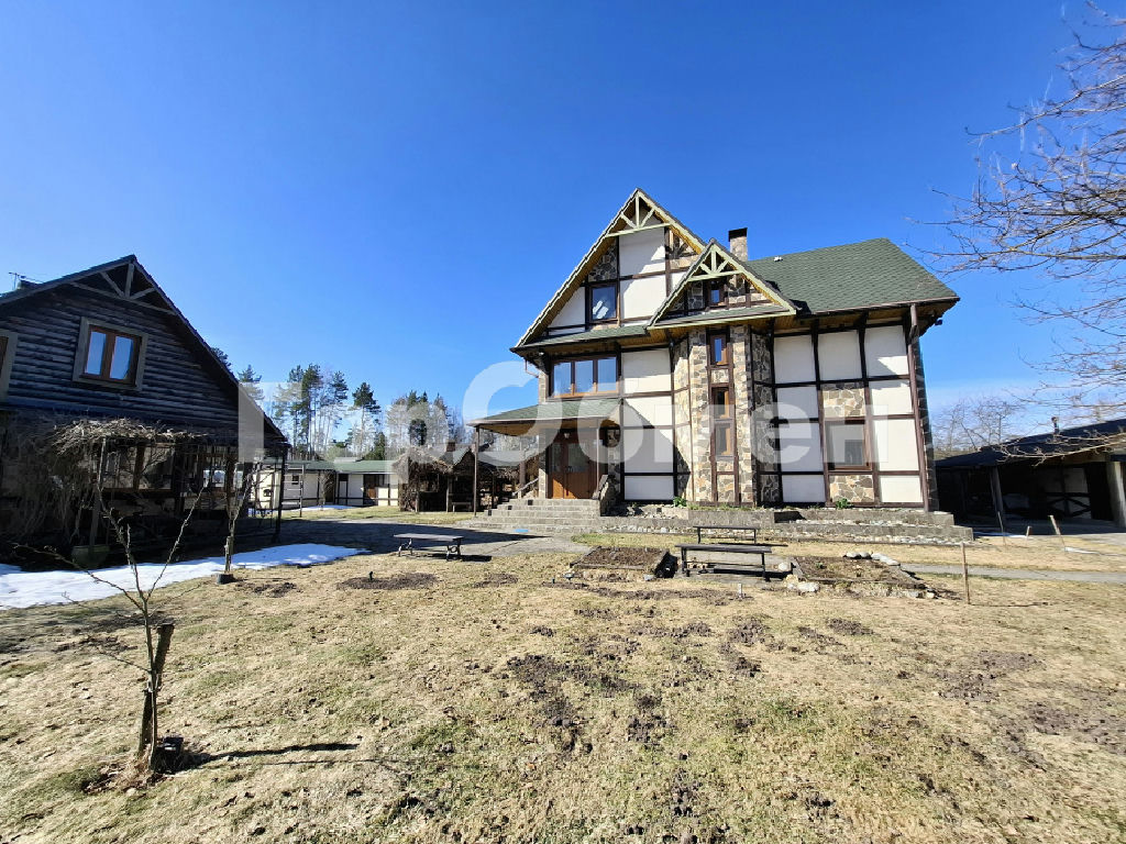 На территории также есть отдельно стоящий 2 этажный Гостевой дом 95кв.м. бревенчатый с мансардой, застекленной террасой, 3 спальни, 2с/у, кухня, гостиная, печь, камин, можно также использовать под круглогодичное проживание.