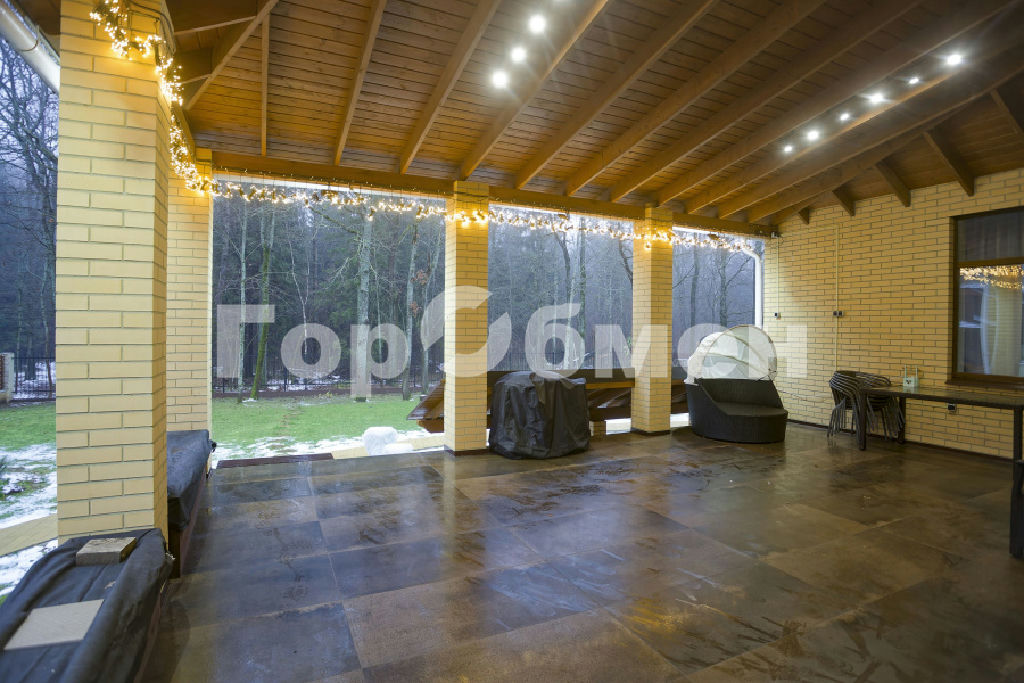 Выход на просторную террасу с кухни-гостиной, где есть место для размещения мангальной зоны. С террасы можно выйти через калитку напрямую в лес, что согласитесь плюс.