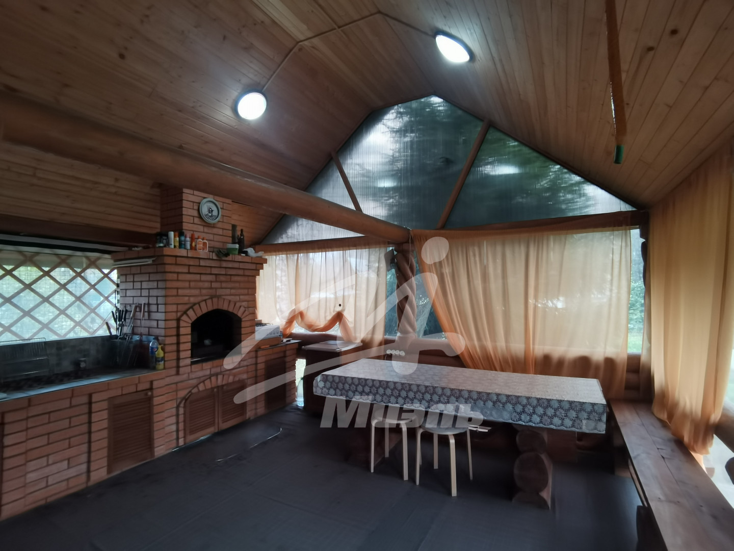На втором этаже -3 комнаты по 9м2 и большой открытый балкон, отопление печь из кирпича с внутренним котлом совмещенная с камином. Полностью ухоженный и оборудованный участок 13 соток, парковка на 4 машины место. Участок ровный, покрыт газоном, небольшой огород, фруктовые деревья, парник. Проложены дорожки из натурального камня.