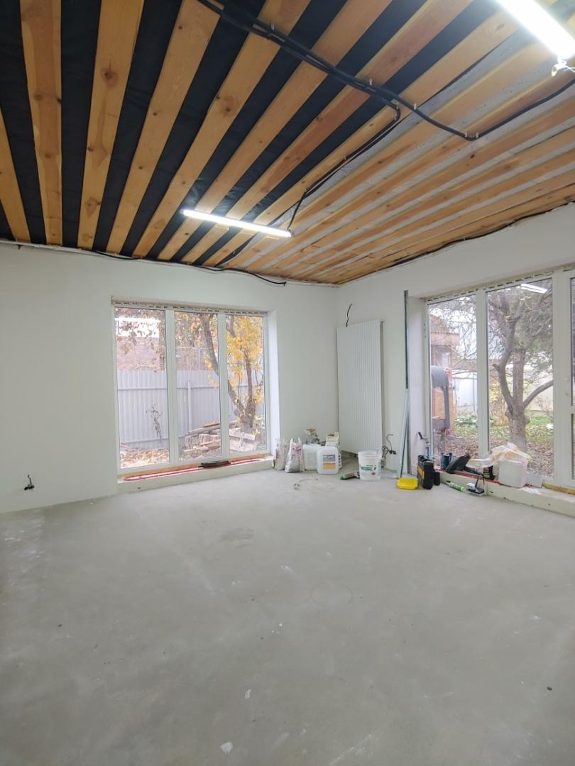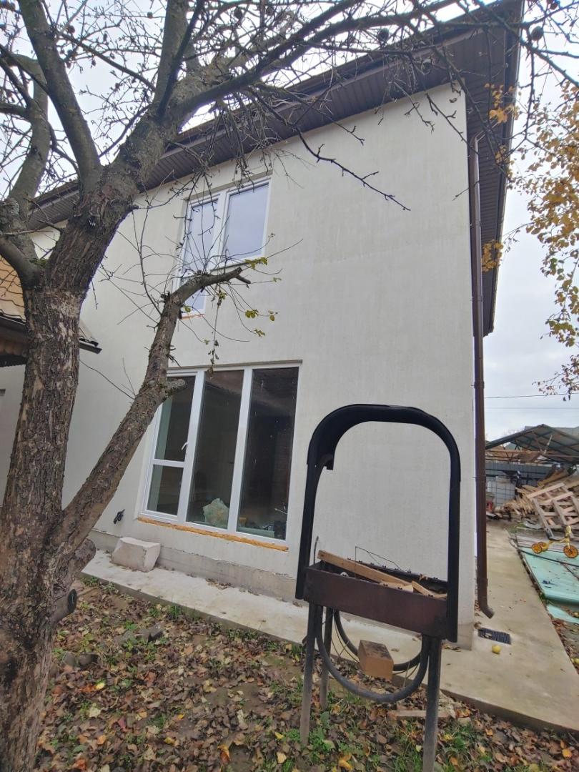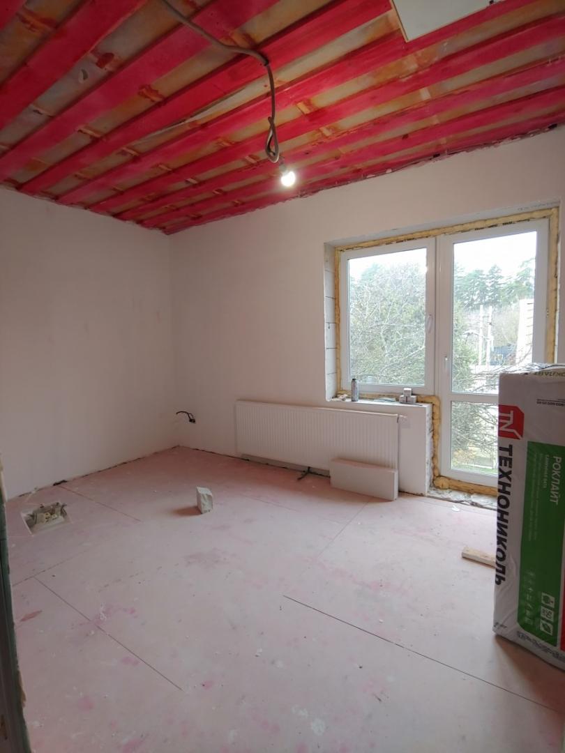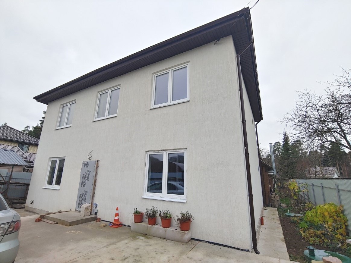- Д о м н о в ы й - 158 м2,(общая площадь, 2 этажа), (под чистовую отделку). В 2024 году началась большая реконструкция объекта со строительства большого дома. Основные характеристики строения: фундамент (монолитная ЖБ плита толщиной 40 см), стены - пеноблок (толщиной 40 см), кровля металлочерепица, перекрытия деревянные. Дом рассчитывался исходя из большой семьи. Второй этаж - 4 спальни (3 детские + 1 взрослая), туалет, ванная комната. На первом этаже - прихожая, большая кухня гостиная и гостевая комната, бойлерная, душевая комната, туалет, комната для пожилых родителей. В новой части дома выполнены все коммуникации: газ, свет, вода, остаётся подключить потребителей. Первый этаж – тёплый пол + батареи, в систему отопления залит теплоноситель с температурой замерзания до -35 градусов, батареи – стальные панельные. На полах полусухая стяжка, на стенах финишная шпаклёвка Vetonit LR+, стены готовились под обои. Окна двухкамерные стеклопакеты Rehau.