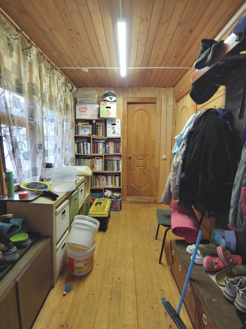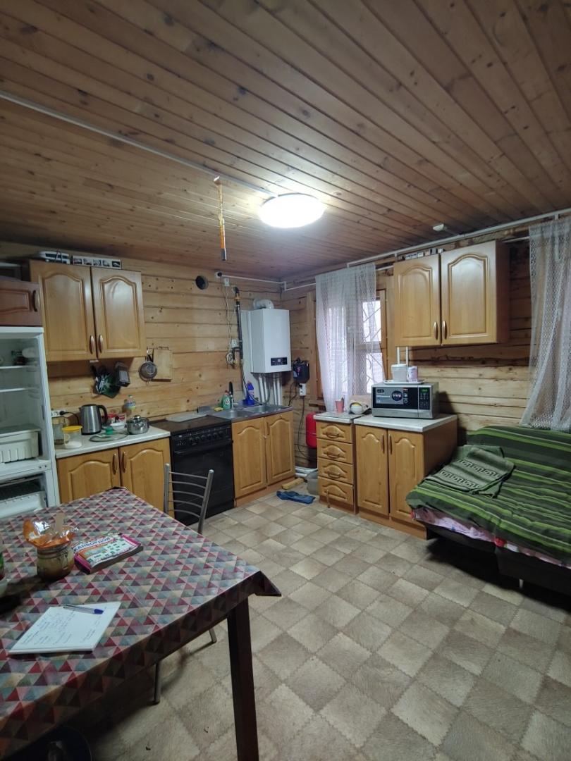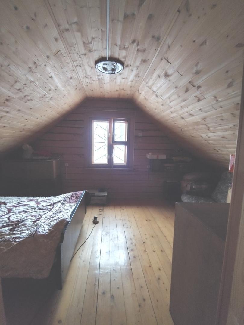Д о м брусовой, старый 150х150 (1-ый этаж +мансардный) на монолитном ленточном фундаменте, общей площадью 76 м2 по документам, построен в 2013 году. На первом этаже располагается большая кухня, гостиная, санузел (туалет, умывальник, душевая кабина, стиральная машина), прихожая.