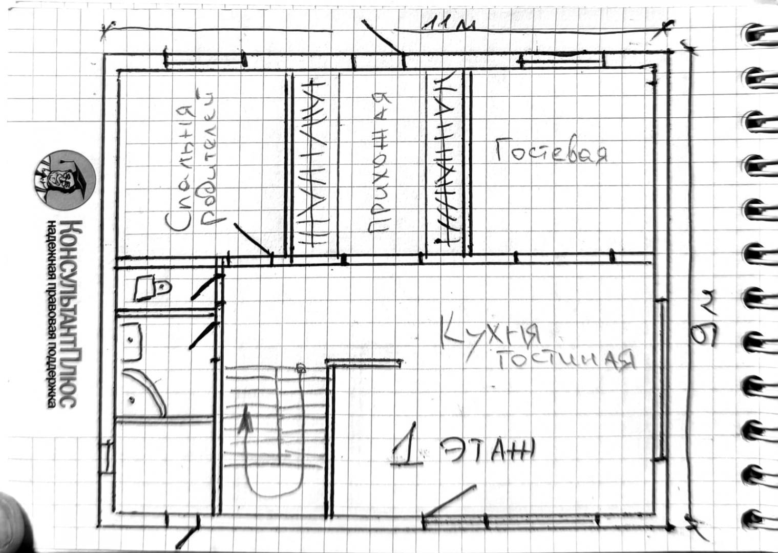 Площадь первого этажа (новая часть) — 82 м2