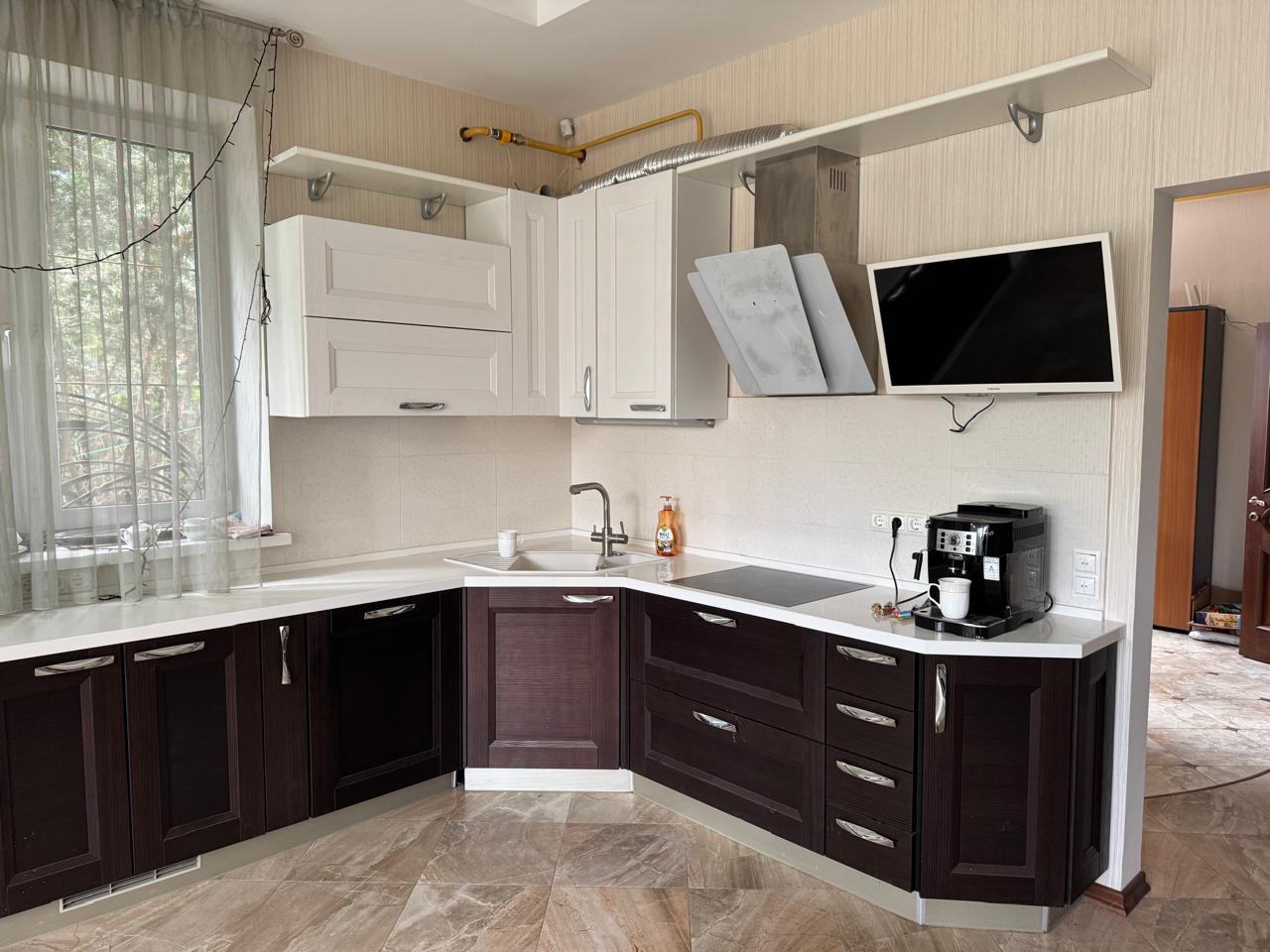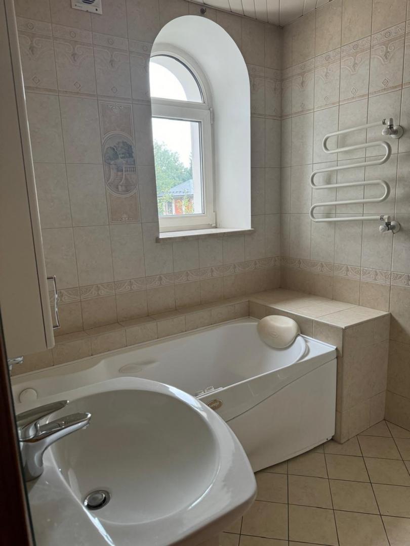 Основной дом площадью 395 кв.м. Дом 4 уровня, 2006 года постройки, строили для себя, газоблоки, обложены кирпичом. В доме сделан евроремонт из дорогостоящих материалов, на каждом этаже раздельные санузлы. На 1-м этаже, прихожая, кухня столовая, кабинет, большой зал, на 2-м этаже три спальни, большой холл и лоджия, мансарда. В цокольном этаже расположена сауна, басейн, санузел, душевая зона, комната для коммуникаций, комната отдыха и маленькая кухня. На этажах есть гардеробные и шкафы для хранения. В доме все городские центральные коммуникации: свет, вода, газ с прямыми договорами, интернет. Вокруг дома на участке ухоженный сад с вековыми соснами, туи, цветы. Есть детская площадка.