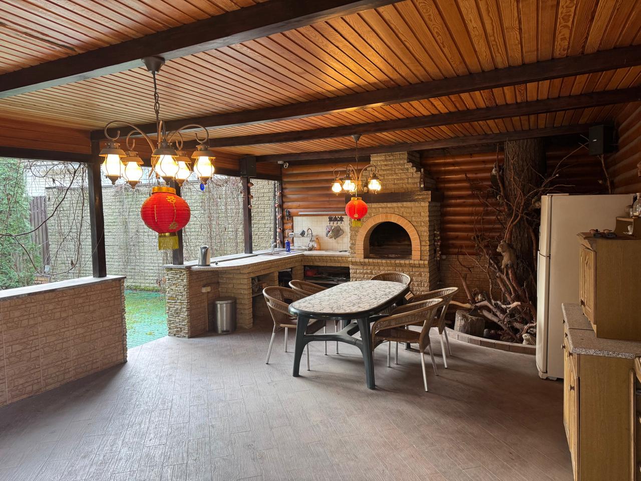 К гаражу примыкает зона отдыха: беседка и барбекю.