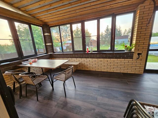 Первый этаж : кухня-гостинная 43 кв.м, укомплектованная всей необходимой техникой( посудомоечная машина Korting, духовой шкаф Gorenje, индукционная плита Haier), спальня (27 кв.м ), сан узел с душевой кабиной , гладильная - постирочная (12 кв.м) и огромная терраса ( зимний сад). Второй этаж: шесть спален , две гардеробные комнаты (одна из них в личной спальне ), сан.узел с душевой кабиной. Подогрев водяными полами с регулировкой в каждом помещении. Все коммуникации разведены по дому, централизованная вода и газ, септик, свет 30 кВт. Большой гараж . Красивое живописное место для проживания, да еще и с развитой инфраструктурой ( магазины, фермерский большой рынок ,МФЦ и школа в 5 км). В двух минутах ходьбы речка, где хорошо можно погулять и искупаться !!! Так же в поселке функционирует церковь Рождества Богородицы . Место очень красивое! Тихое не сильно заселенное место , проживают всего 6 домов .Приезжайте это все надо увидеть в живую и влюбиться !!!
