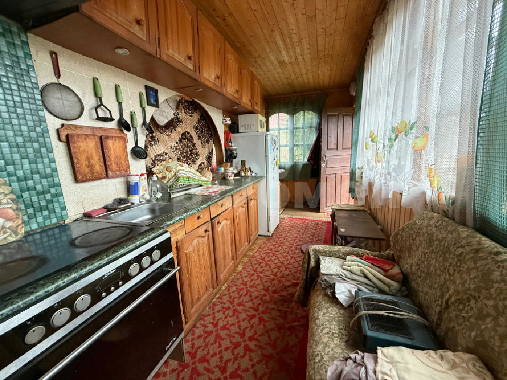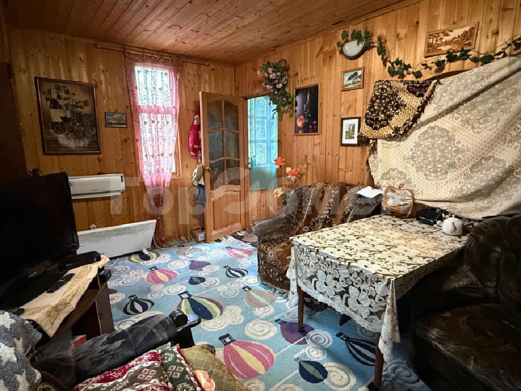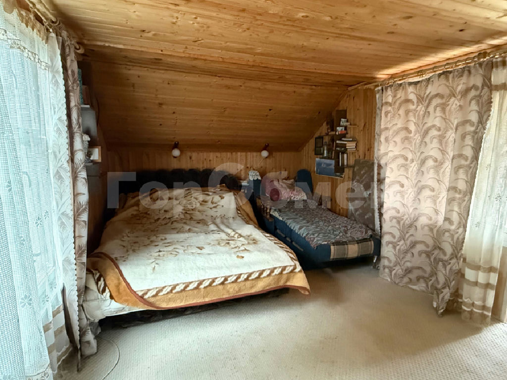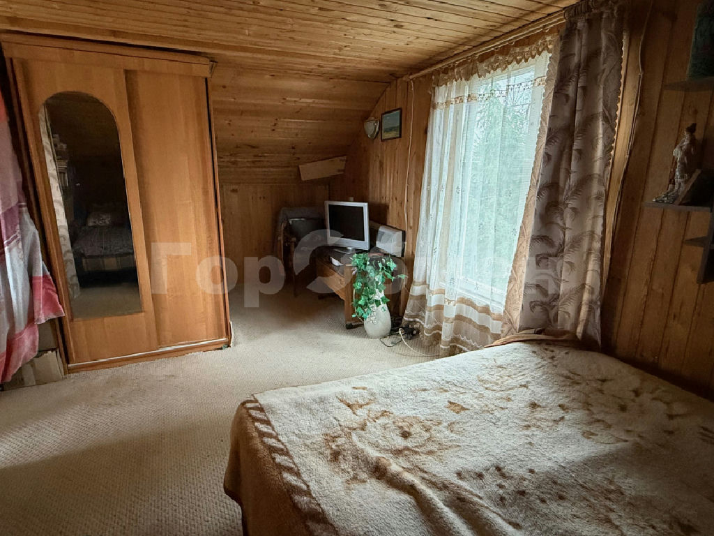 Дача с Московской пропиской. Ухоженный участок с кустарниками и вечнозелеными и плодовыми деревьями. Двухэтажный дом (стены: брус, утеплитель, вагонка внутри и сайдинг снаружи, крыша шифер). На первом этаже дома кухня и спальня, на втором этаже спальня и балкон с открывающимся панорамным видом на лес. Вода: колодец, канализация: надворная уборная.
