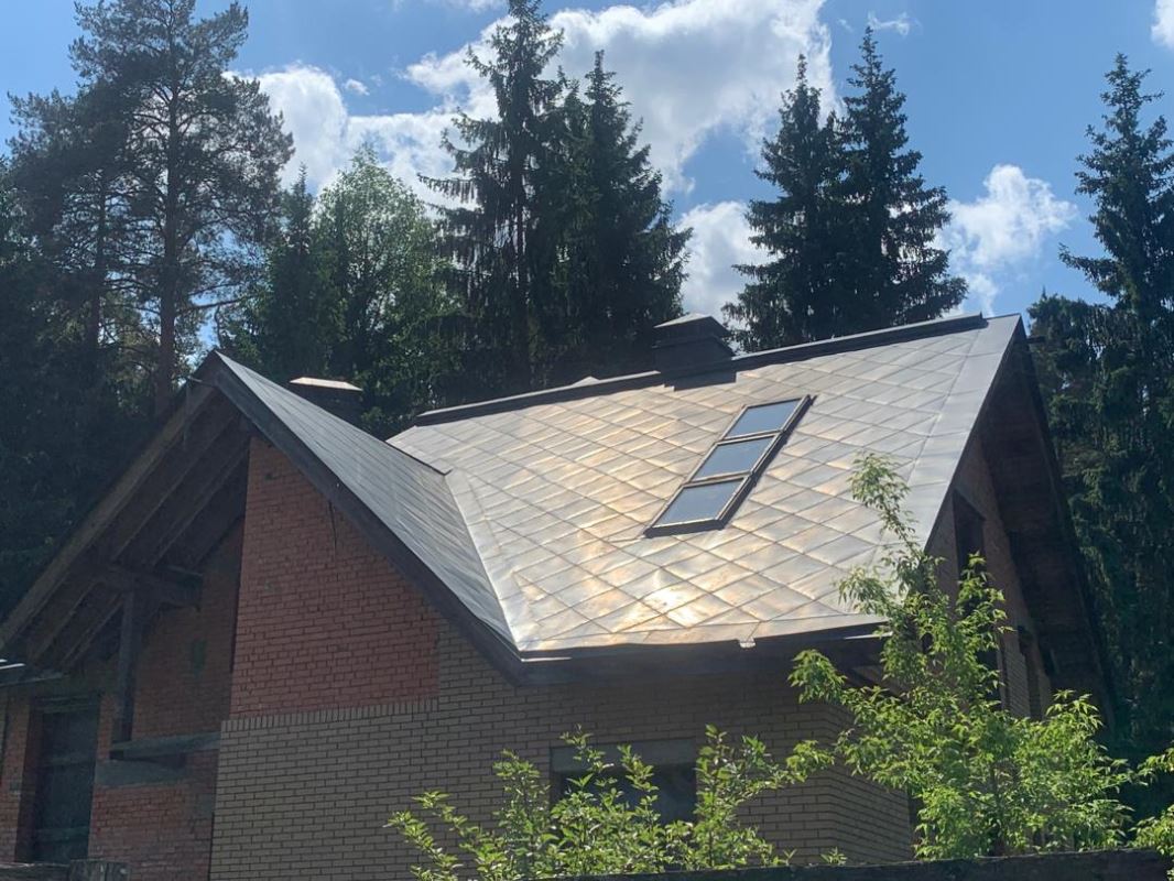 - Крыша утеплённая, покрыта медной черепицей.
