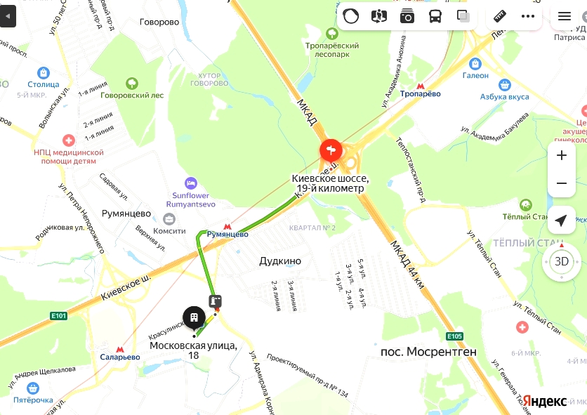 Тропарево м. (20 мин. транспортом)