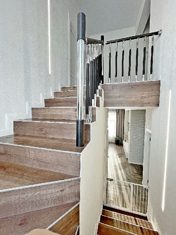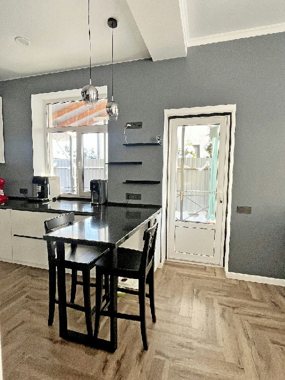 1 этаж: просторная светлая гостиная, объединенная с кухней-столовой, с выходом на терассу, кабинет, прихожая, бойлерная -постирочная, санузел, кладовая;