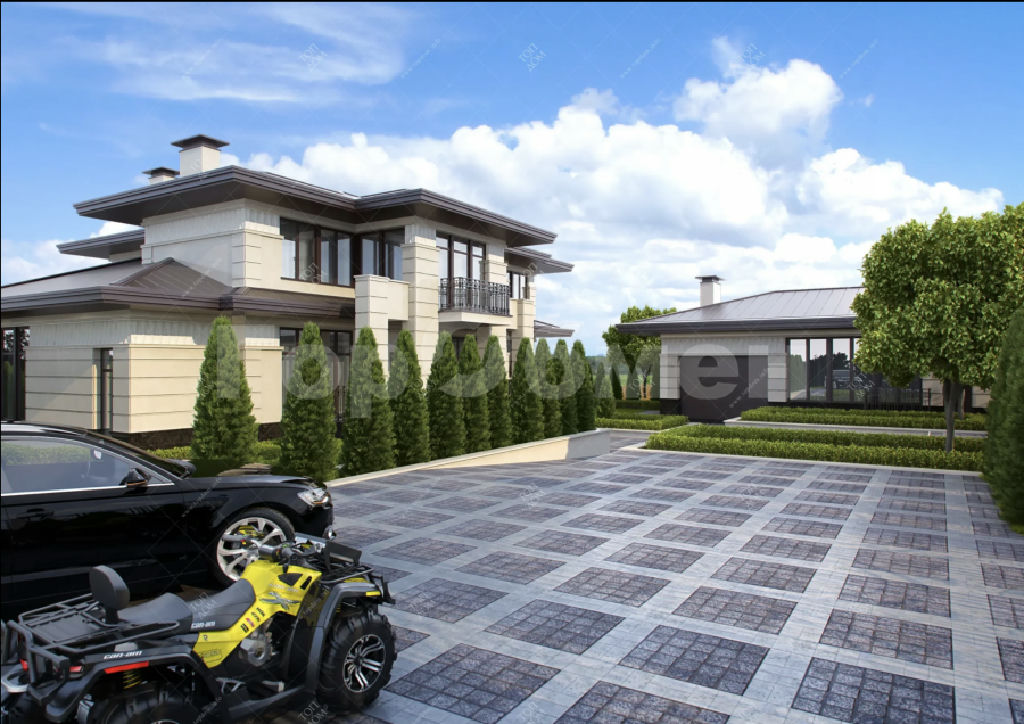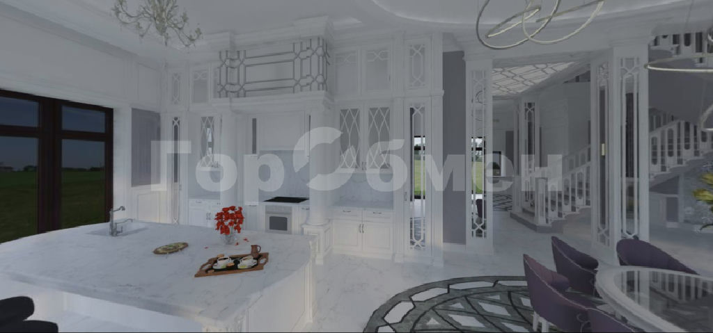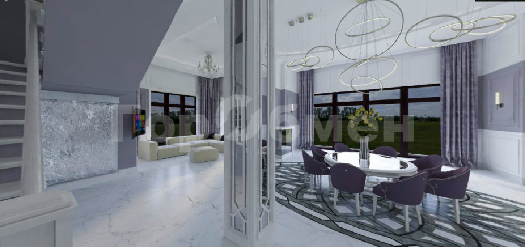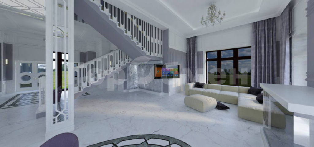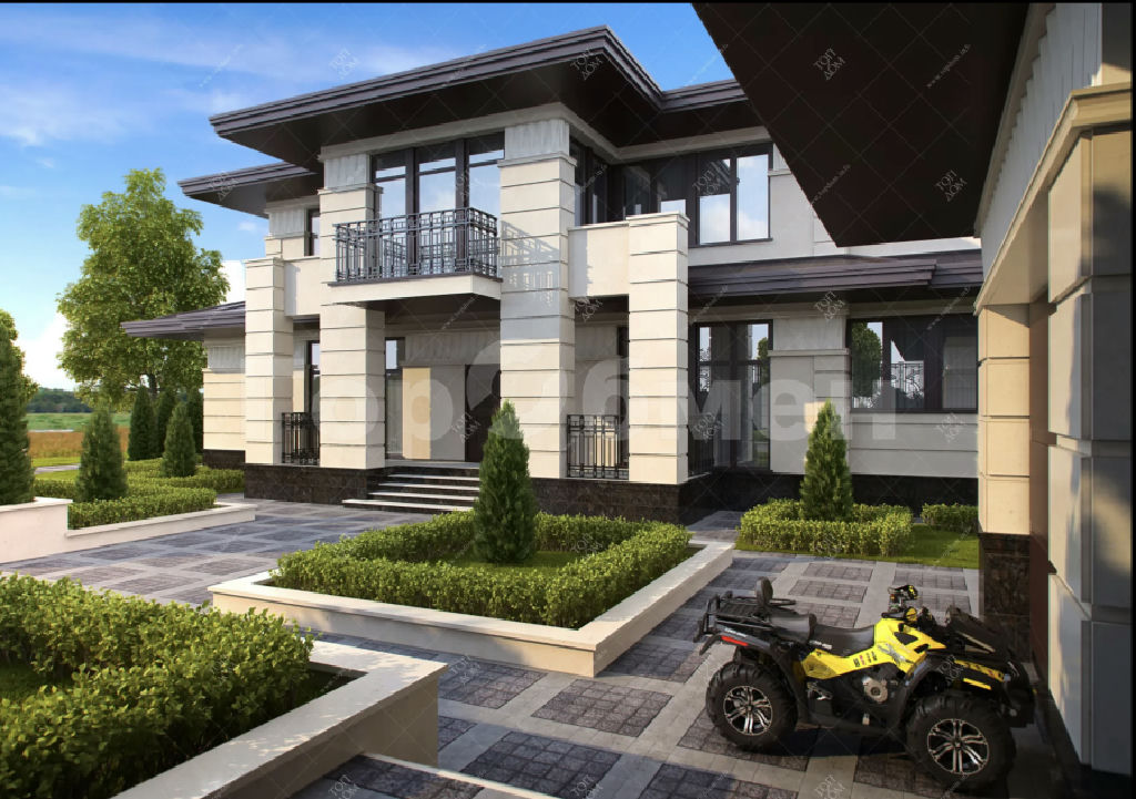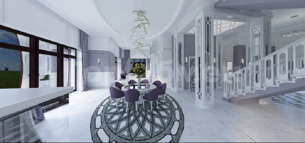 Просторный, с большим количеством световых проемов с панорамным остеклением в жилых комнатах и кухне-гостинной общей площадью 500 квадратных метров в 2 этажа. Фундамент плита с утеплением, перекрытия монолит. Монолитная лестница между этажами. Потолки 4,3 метра. , 6 изолированных комнат в т.ч. 5 спален с санузлом и гардеробными. Просторная кухня-гостинная, с выходом на веранду. Наружние стены блок.