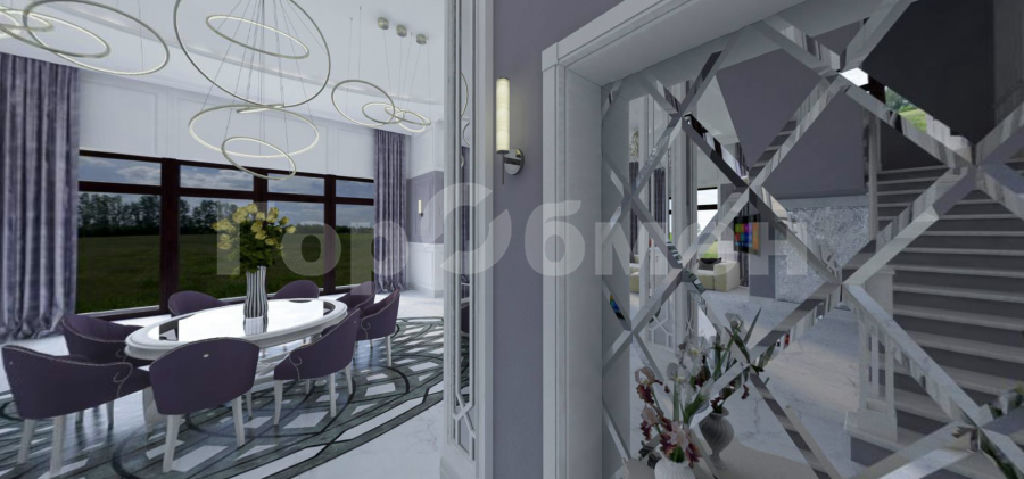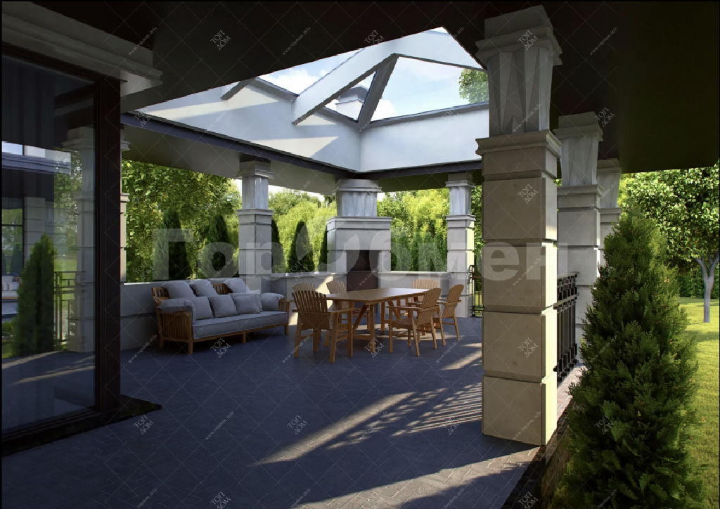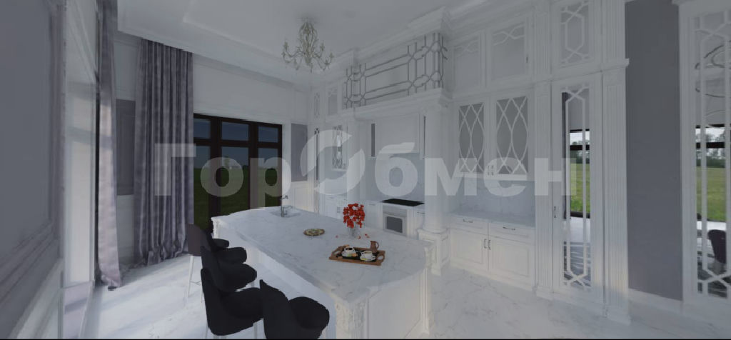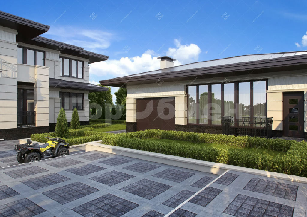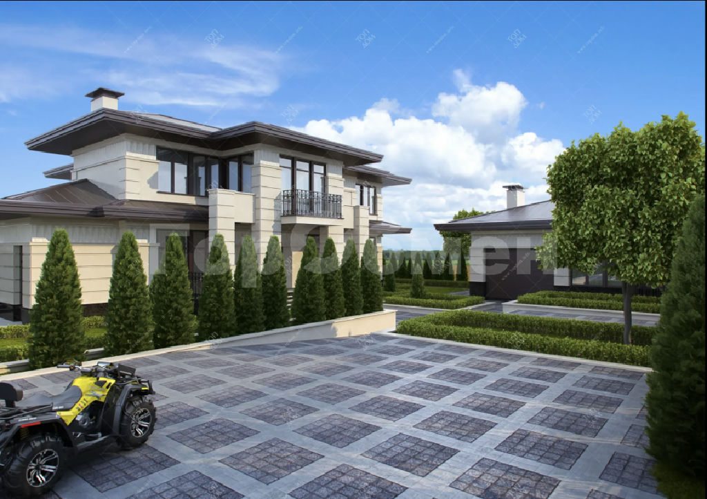 Просторный, с большим количеством световых проемов с панорамным остеклением в жилых комнатах и кухне-гостинной общей площадью 500 квадратных метров в 2 этажа. Фундамент плита с утеплением, перекрытия монолит. Монолитная лестница между этажами. Потолки 4,3 метра. , 6 изолированных комнат в т.ч. 5 спален с санузлом и гардеробными. Просторная кухня-гостинная, с выходом на веранду. Наружние стены блок.