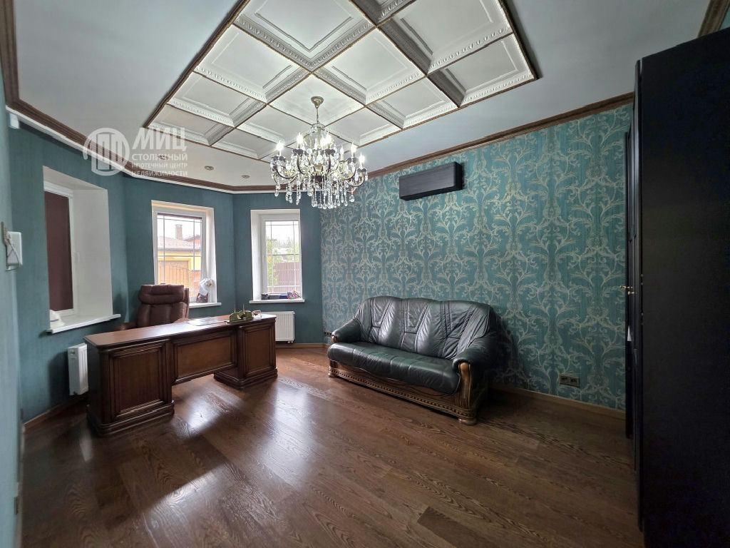 На 1 этаже терраса 21м.,кухня-столовая 31м., гостиная с камином 32.м., кабинет 19 кв.м., с\у постирочная, тамбур и холл 15м.. Потолки 3.2 м.