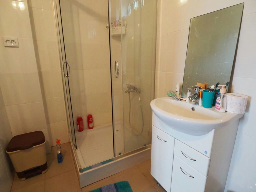 1-й этаж: прихожая, столовая, кухня, гостиная, санузел с душевой кабиной, 1 спальня.