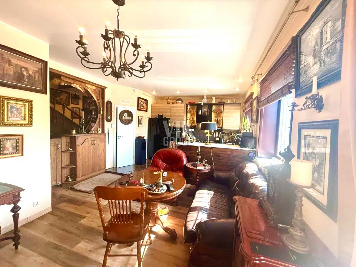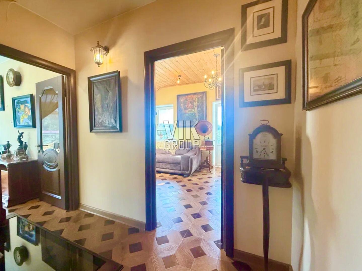 Продается прекрасный трехэтажный коттедж (таунхаус) в районе Внуково квартал 56А дом 7 Москвы Новомосковского округа, ориентир дер Пыхтино или СНТ Солнечный-Внуково. Дом возведен в 2014г по индивидуальному проекту. Удобная и функциональная планировка, общей площадью 180кв.м. На 1 этаже уютная прихожая (16кв.м) со встроенным шкафом, шикарная кухня-гостиная (28кв.м) с красивым итальянским кухонным гарнитуром и встроенной техникой фирм Bosch и Shivaki (посудомоечная машина, вытяжка, варочная панель, духовой шкаф, двухдверный холодильник). Интересно выделена зона кухни - подиумом и барной стойкой, отделанной натуральным камнем с мраморной столешницей и встроенным потайным сейфом. На окнах красивые, резные кованные решетки, авторской работы. Совмещенный санузел (6кв.м) отделан светлой плиткой и с небольшим окном. Бойлерная. Под лестницей - место для хранения. Практичная, интересная межэтажная бетонная лестница, обшита деревом с деревянными балясинами. На 2 этаже холл 10кв.м, просторная спальня (23кв.м) с гардеробом, кабинет (15кв.м) с гардеробом и выходом на балкон, совмещенный санузел (6кв.м) с небольшим окном. На 3 этаже большая библиотека (26кв.м) с вместительной гардеробной (7кв.м) и выходом на балкон, гостевая комната (13кв.м) с красивыми арочными окнами. Высота потолка 3м. Дизайнерский ремонт выполнен из высококачественных материалов: на полу антивандальный художественный ламинат и кварц-виниловое покрытие, полы с подогревом в местах с плиткой, на окнах деревянные трех камерные солнцезащитные стеклопакеты, изюминкой дома является ручки на окнах ХIX века, натяжные потолки с точечными светильниками, установлена сигнализация, видеонаблюдение в доме и по периметру участка, кондиционеры, на радиаторах отопления - деревянные экраны, декоративные балясины на полукруглых резных кованных балконах. Коммуникации заведены в дом: электричество, отопление двух контурный котел, бойлер на 200 л, американская система очистки воды, канализация- септик, водопровод- скважина 60метров. Кадастровый № 77:17:0100309:14865. Конструктив дома - ж/б блоки, толщина стен – метр, внешне отделан декоративным кирпичом, крыша - металлочерепица. Земельный участок площадью 180кв.м, огорожен двухметровым металлическим забором с видеонаблюдением. Категория: земли населенных пунктов, использование: для индивидуального жилого дома. Кадастровый № 77:17:0100309:14807. На территории гараж с автоматическими воротами, хоз блок, зона барбекю огорожена кованным забором. Дом расположен около Пыхтинского парка с прудом, с зонами отдыха, детскими и спортивными площадками. Отлично развитая инфраструктура района, рядом школы, детские сады, поликлиники, магазины. В шаговой доступности метро Пыхтино. 1 собственник, полная стоимость в ДКП.