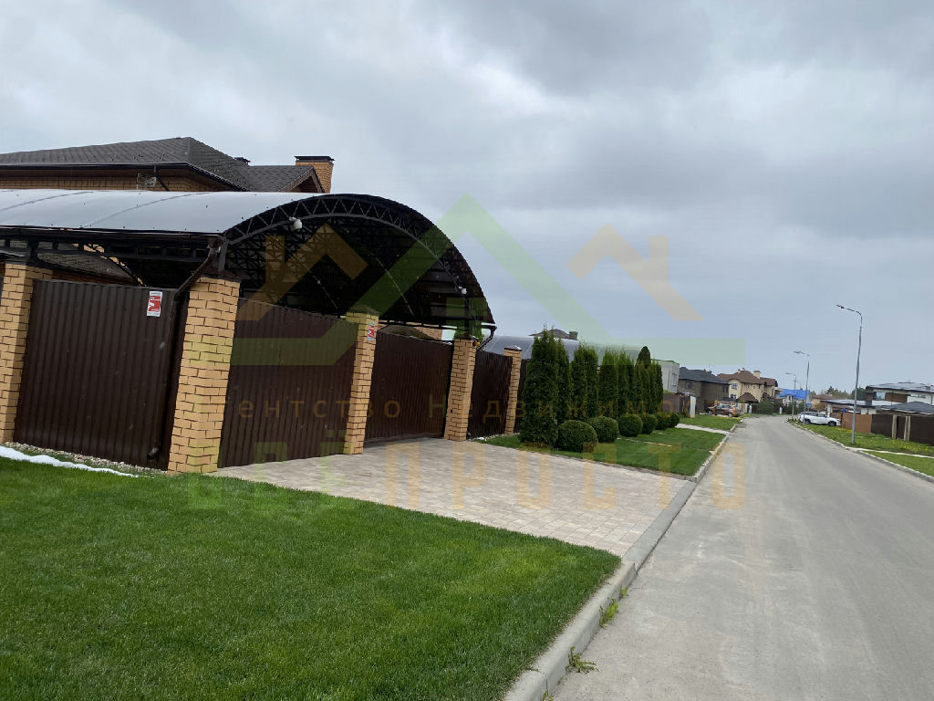 Участок 11 соток, правильнй формы,по периметру огорожен забором,автоматические ворота,крытая парковка на 8 машин. На участке высажен газон, выложены дорожки, оборудовано 6 точек для полива участка, подключено освещение.