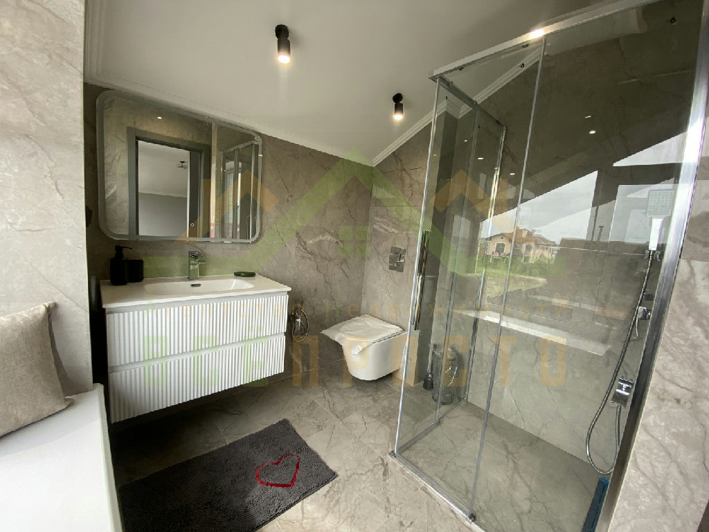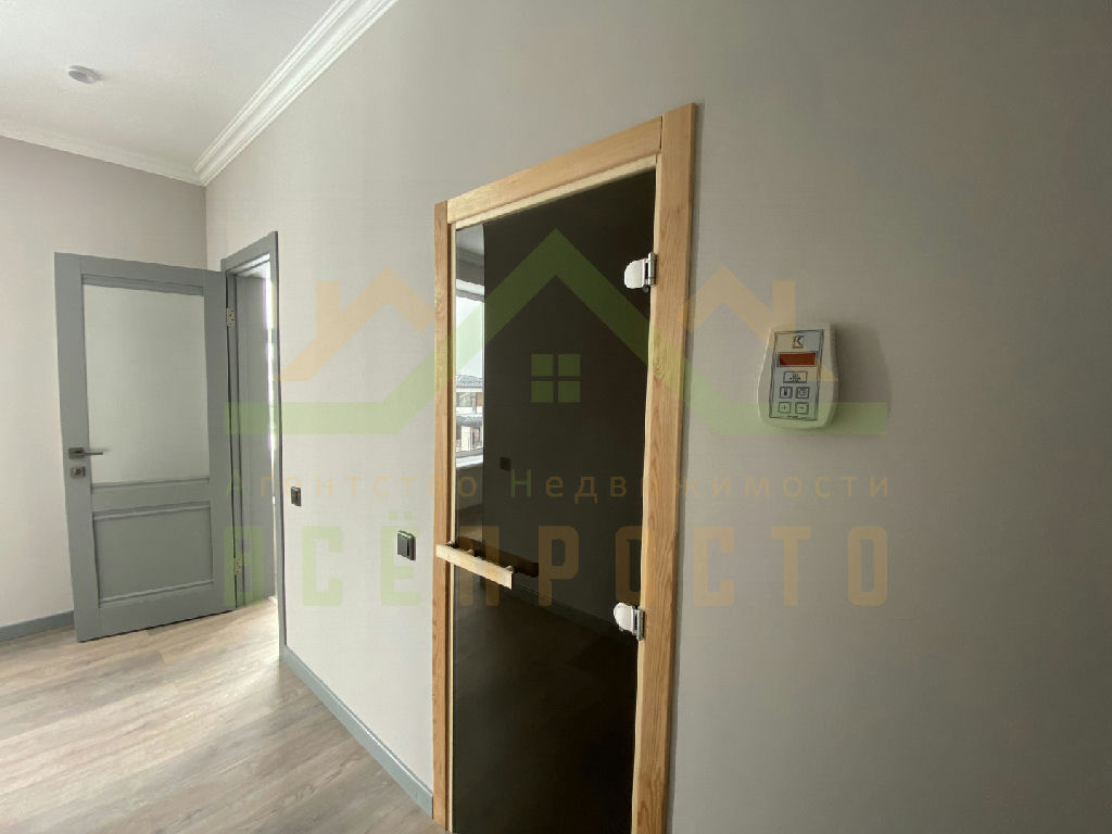 Дом имеет функциональную планировку, на первом этаже размещено 2 комнаты : одна комната мастер-спальня ( отдельный сан/узел и гардеробная) , вторая комната свободого назначения (спальня, кабинет, игровая и т.д.), большая гостинная, с выходом на террасу, кухня-столовая, оснащенная современной бытовой техникой и подсветкой, сан/узел и просторный холл, с видеонаблюдением.