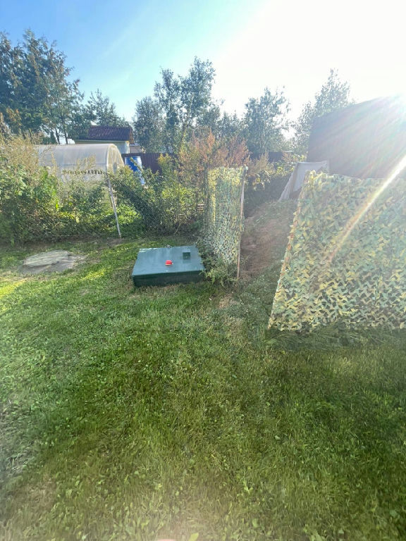 Прямоугольной правильной формы с естественным уклоном. Стоянка для автомобиля, детская площадка. Огорожен забором. Имеется хозблок 2*6 м. Мангальная зона.