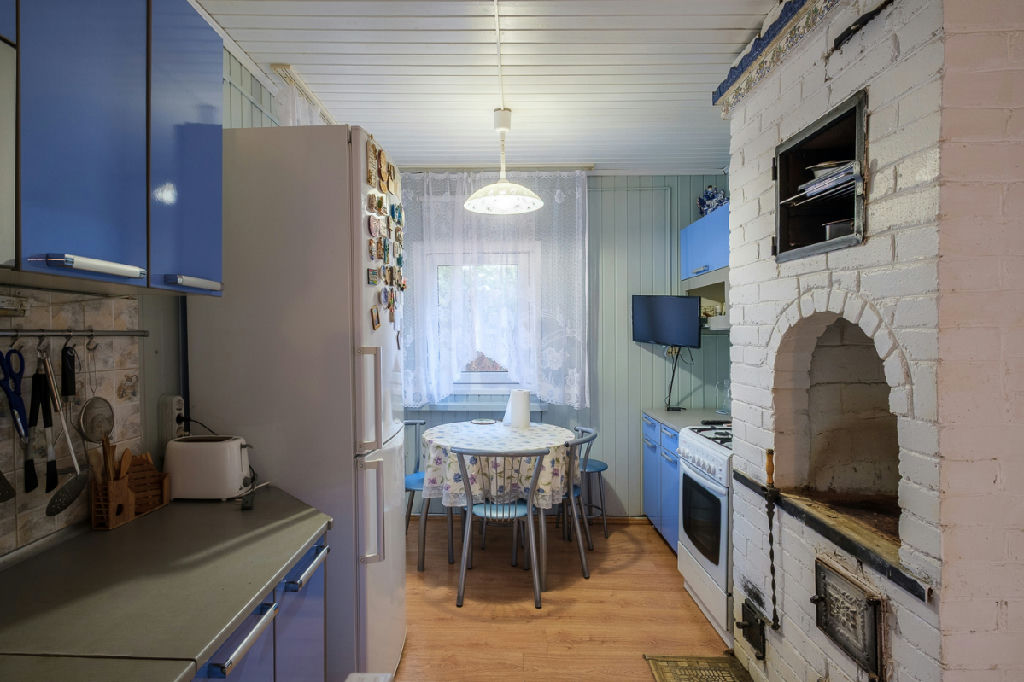 - Отопление: классическая русская печь, на отдельном фундаменте, с камином. Конвектора электрические, электрический теплый пол.