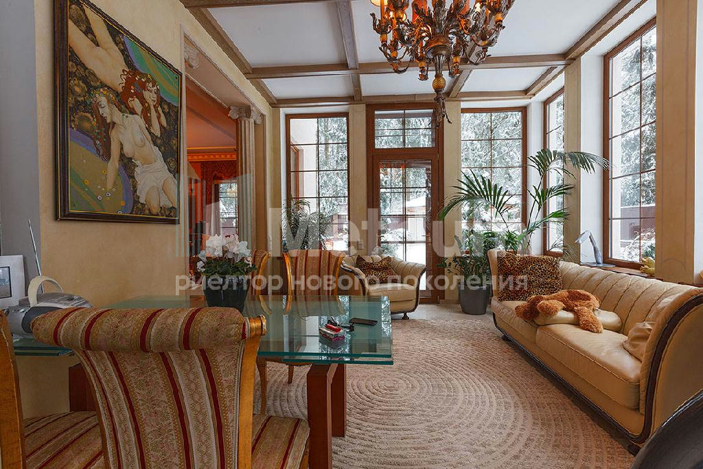 ID 1347 Предлагается коттедж в одном из наиболее известных стародачных поселков, в 10 км от МКАД между Боровским и Минским шоссе. По соседству расположился поселок ОАО "Лукойл" с самыми респектабельными соседями. Территория поселка находится в лесу с вековыми соснами и оснащена современными центральными коммуникациями. На участке полностью выполнен ландшафтный дизайн с декоративным освещением, мощенными дорожками и системой автополива. Дом выполнен из качественных материалов, обставлен эксклюзивной мебелью. Участок находится под видеонаблюдением и охраняется.