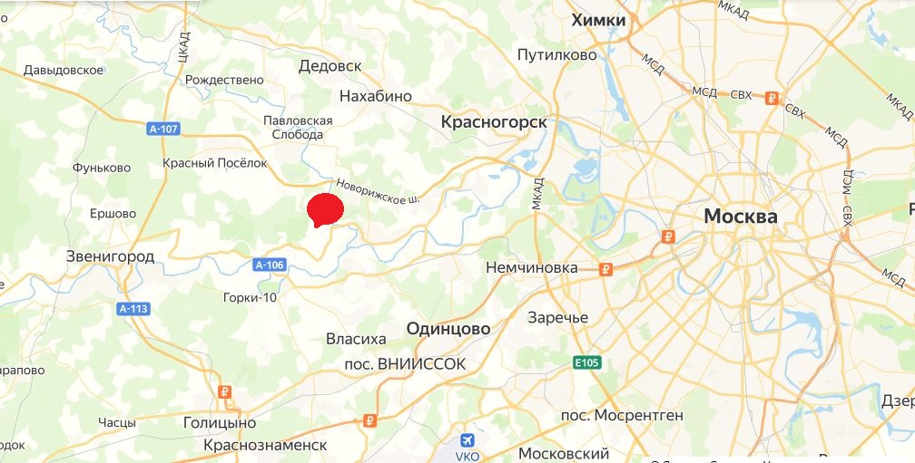 Участок расположен в черте населенного пункта, с. Дмитровское, Красногорского р-на. Удобный подъезд с Новорижского и Ильинского шоссе по асфальтовой дороге.