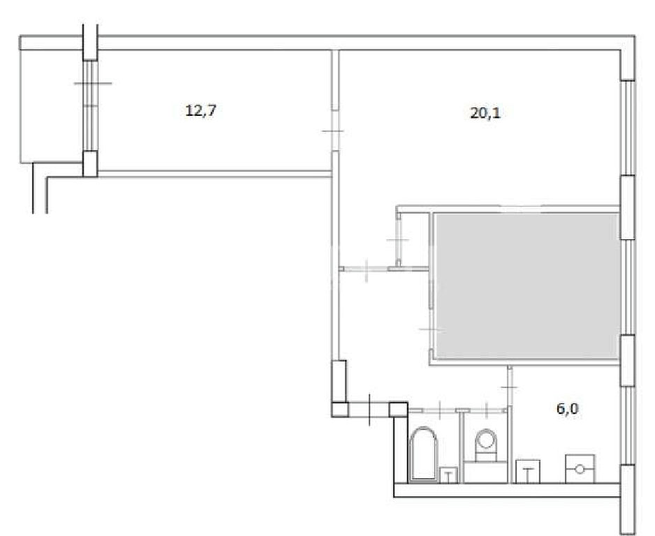 Лот 66908 в свободной продаже, 2 комнаты в 3х комнатной коммунальной квартире. Квартира без мебели и ремонта.