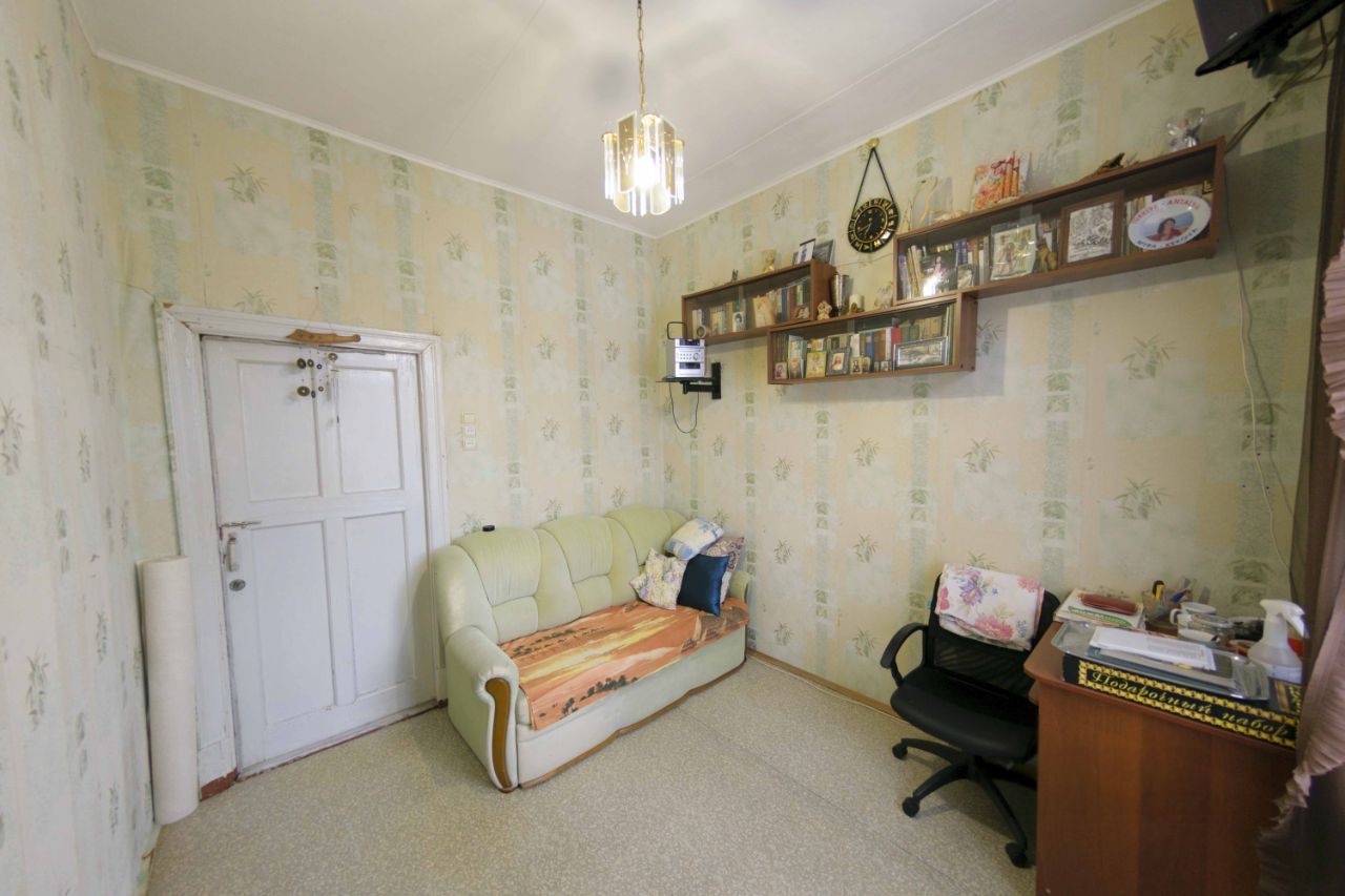 Дом сталинка, кирпичный, высокие потолки 3 м., кухня 12 кв.м., санузел раздельный. Комната чистая, соседи две женщины. Места общего пользования без ремонта.