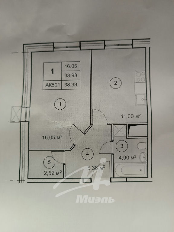 Общая: 39 м2