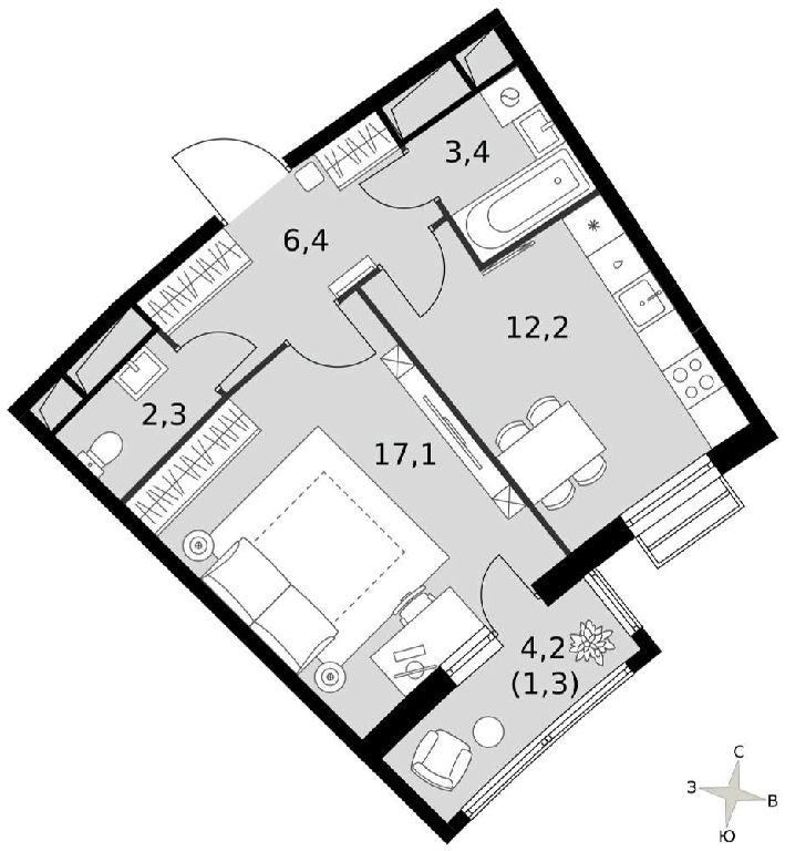 Жилая: 17,1 м2