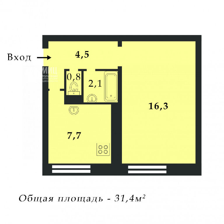 Общая: 31,4 м2