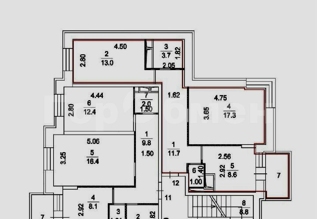 Комнаты: 17.3 13 м2