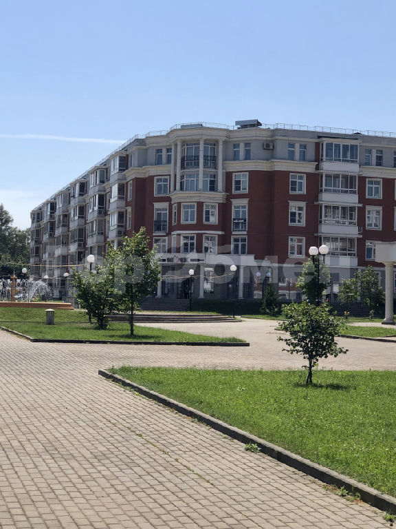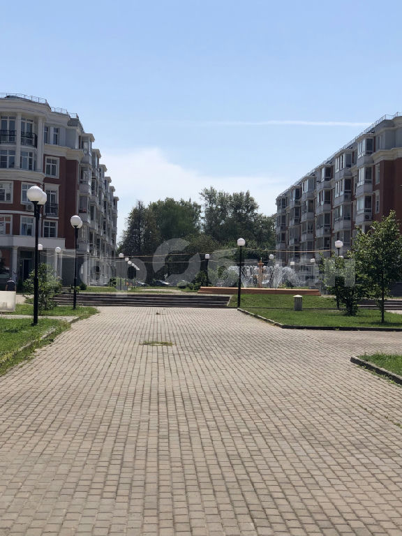 Ухоженная территория с фонтаном и прогулочными дорожками.